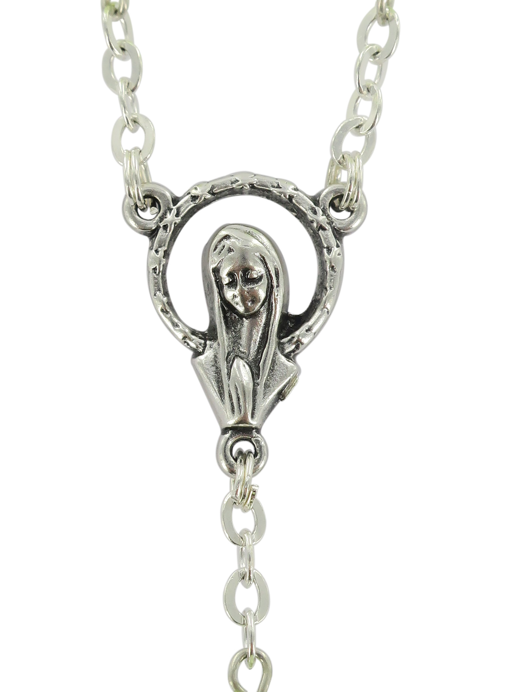 Rosario rilegato a mano in argento con lavorazione a girello e grano tondo del diametro 6 mm.