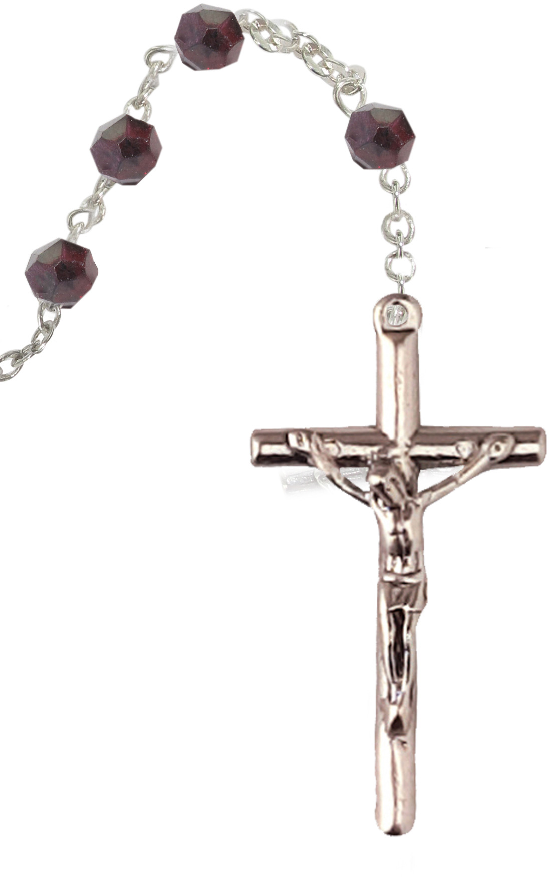 Rosario in vero granato mm 5 circa con legatura a mano in argento