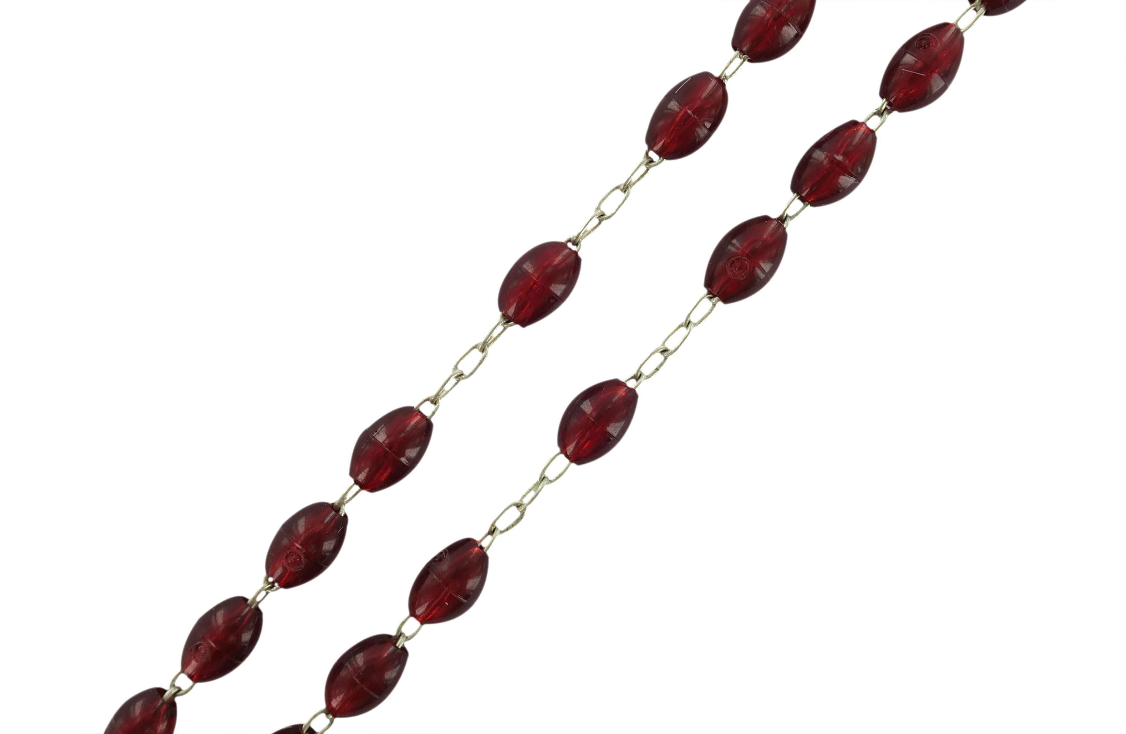 Rosario in plastica ovale granata con legatura a macchina