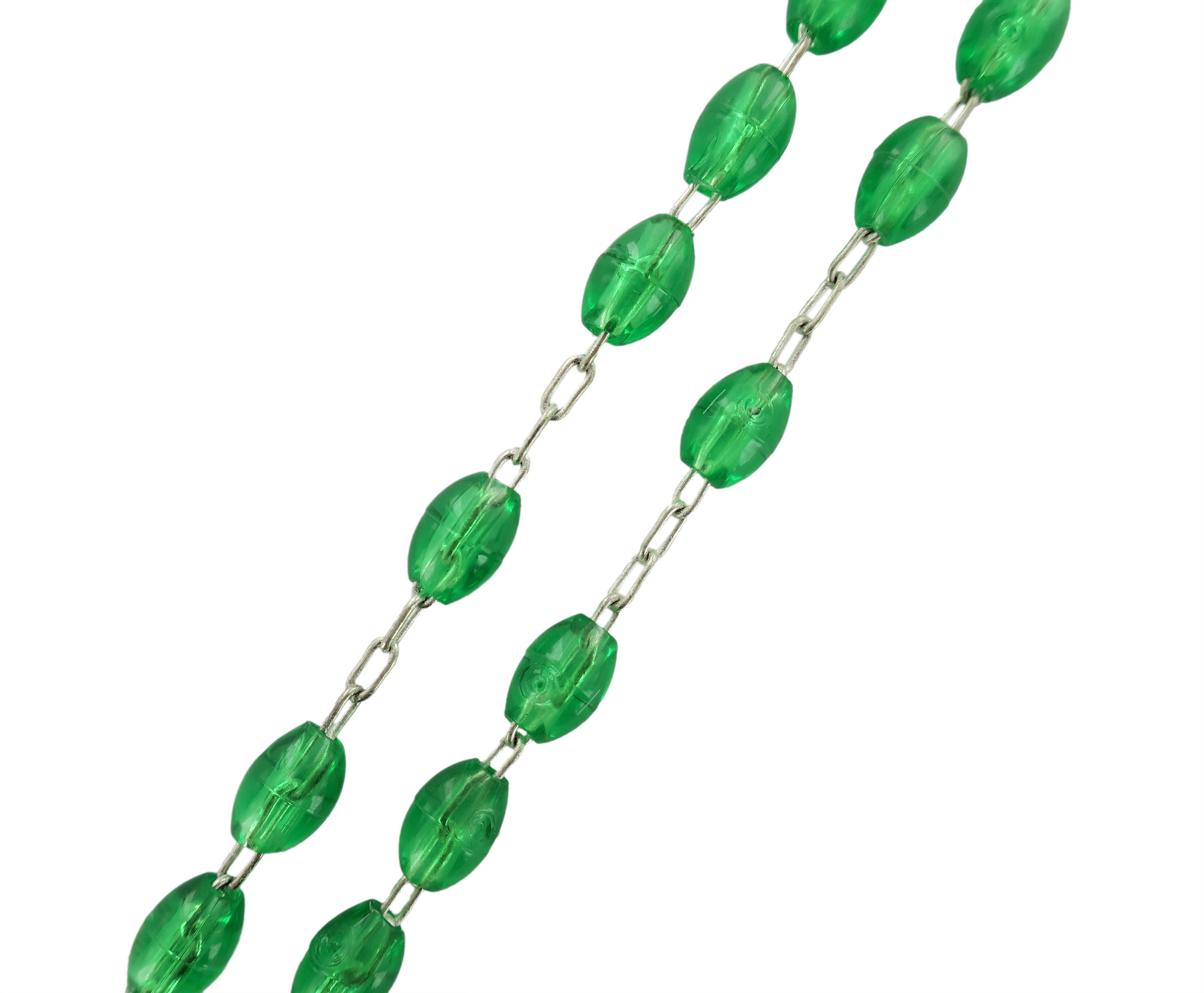 Rosario in plastica ovale verde con legatura a macchina