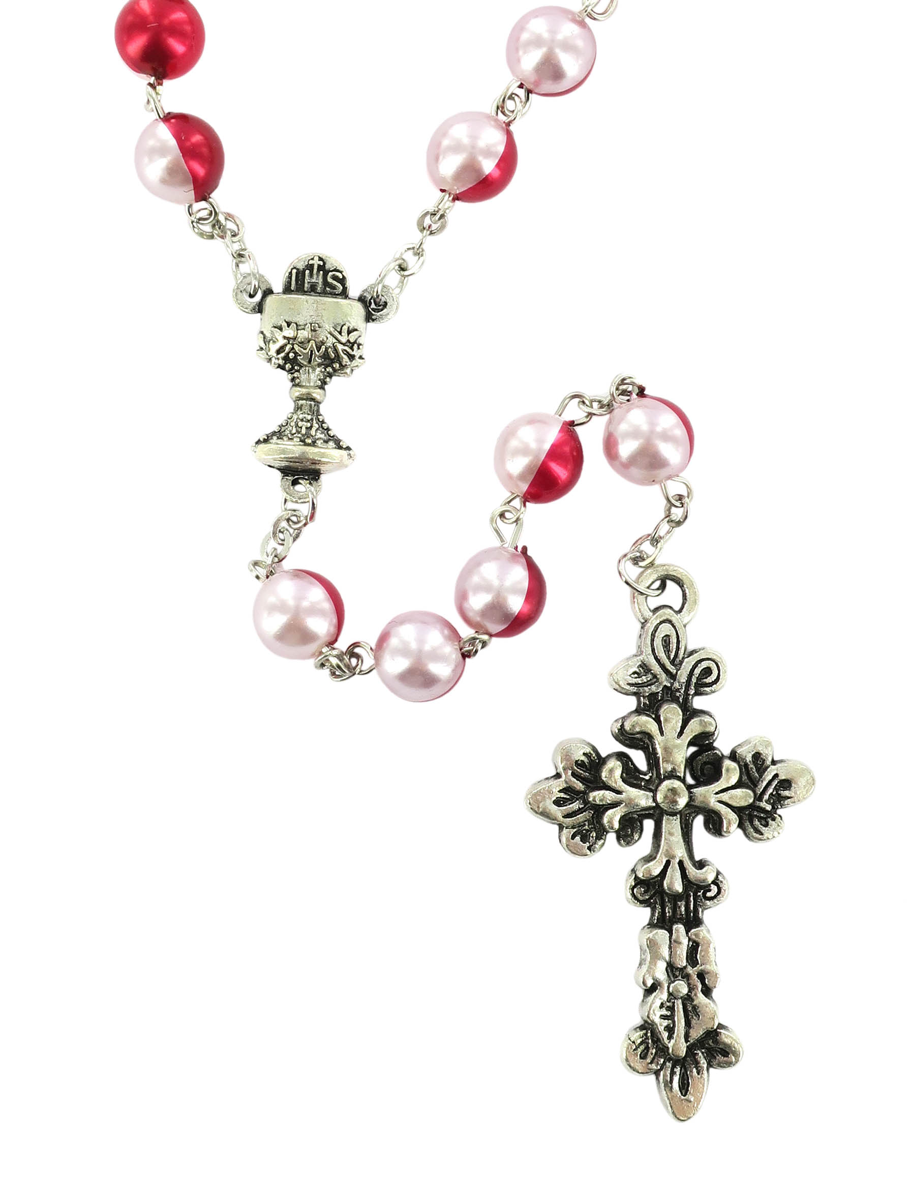 Rosario in plastica tondo bicolore mm 8 legatura in metallo