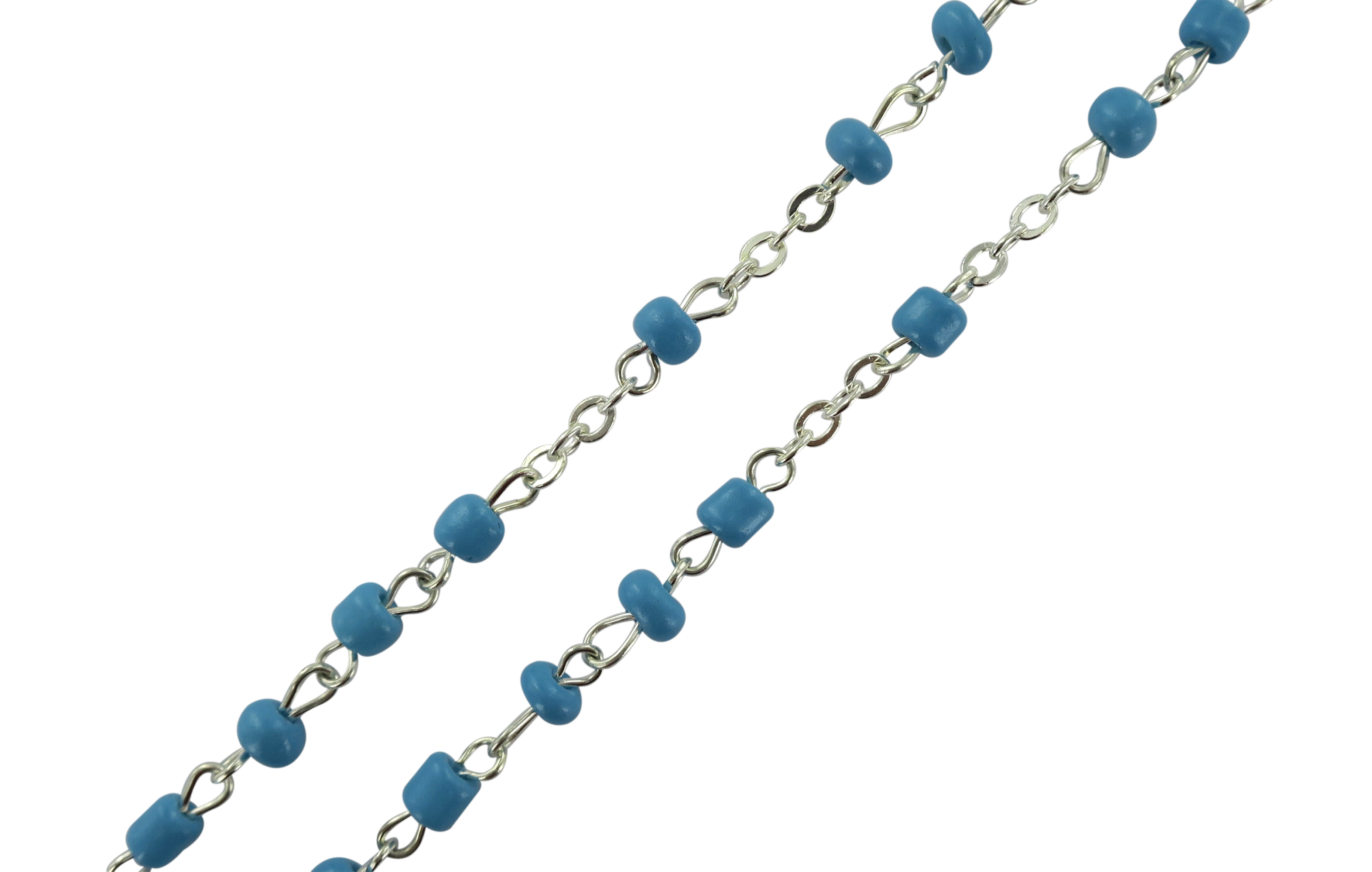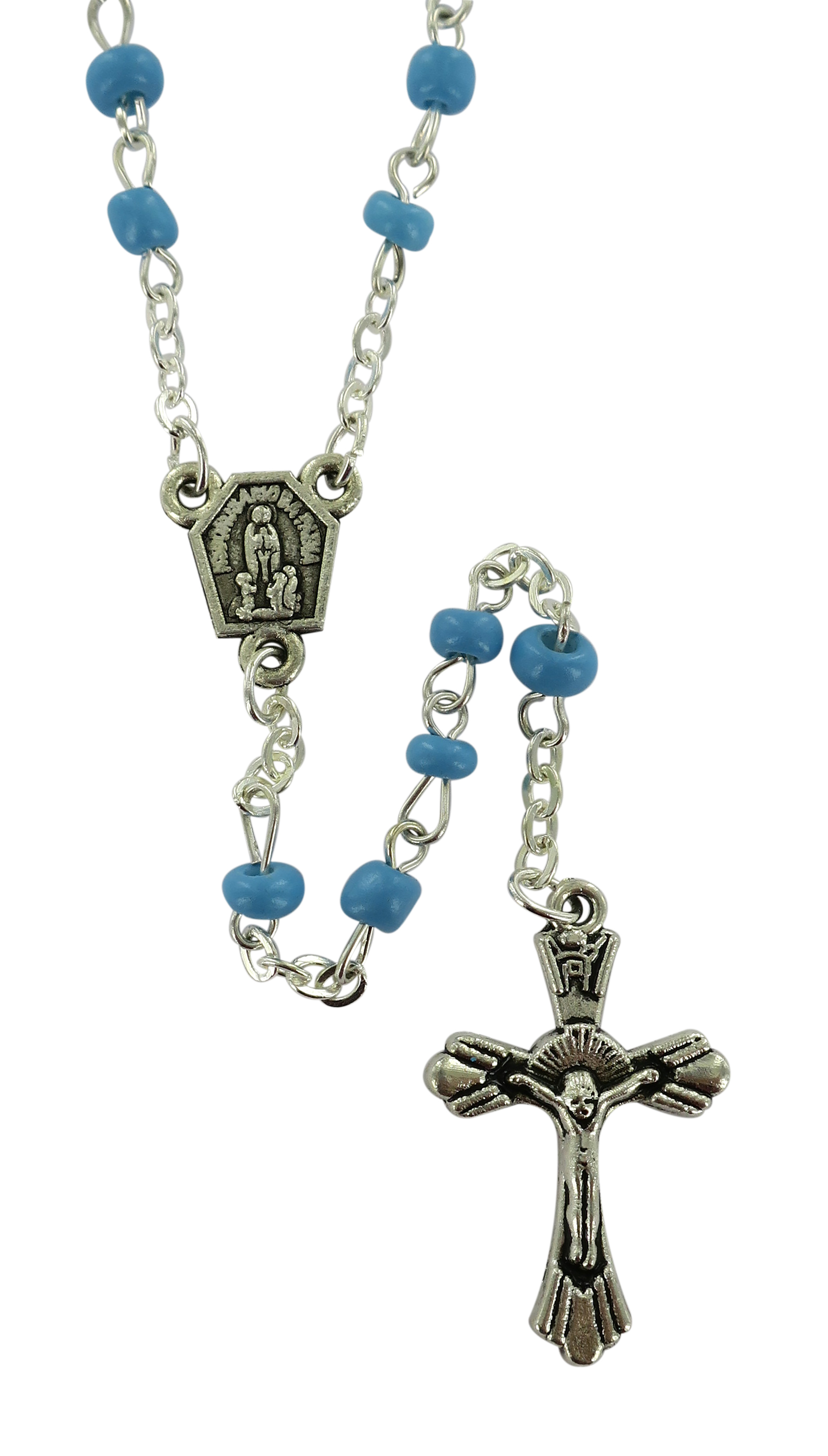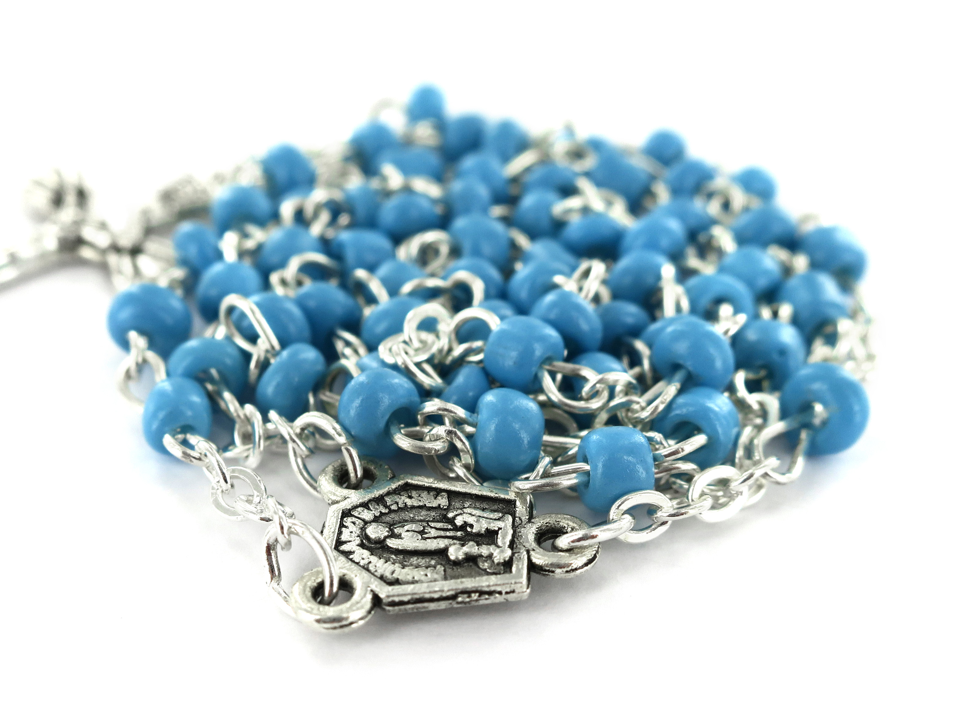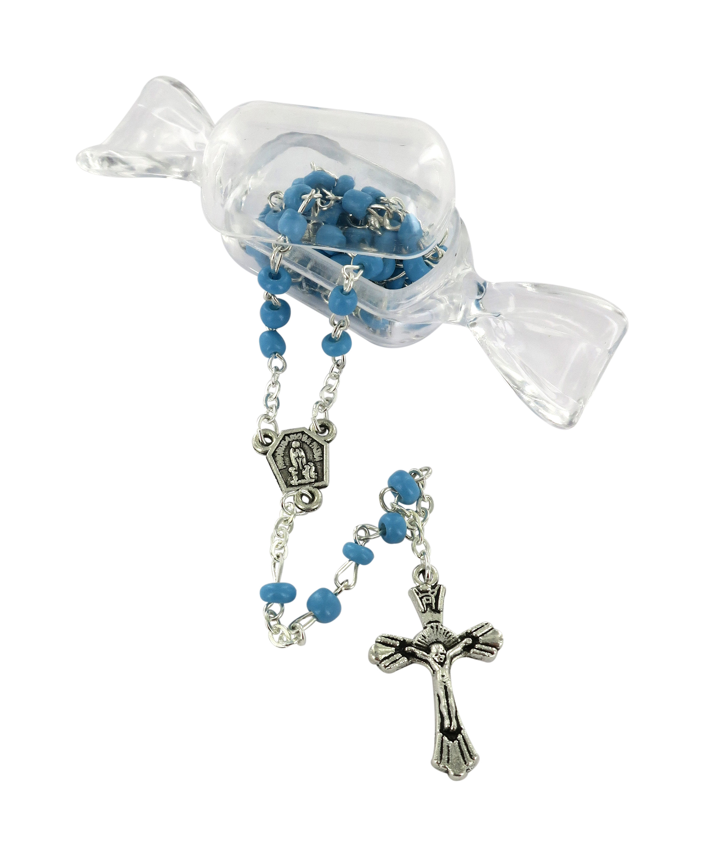 Rosario perlina azzurra mm.4 con confezione trasparente a forma di caramella
