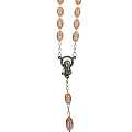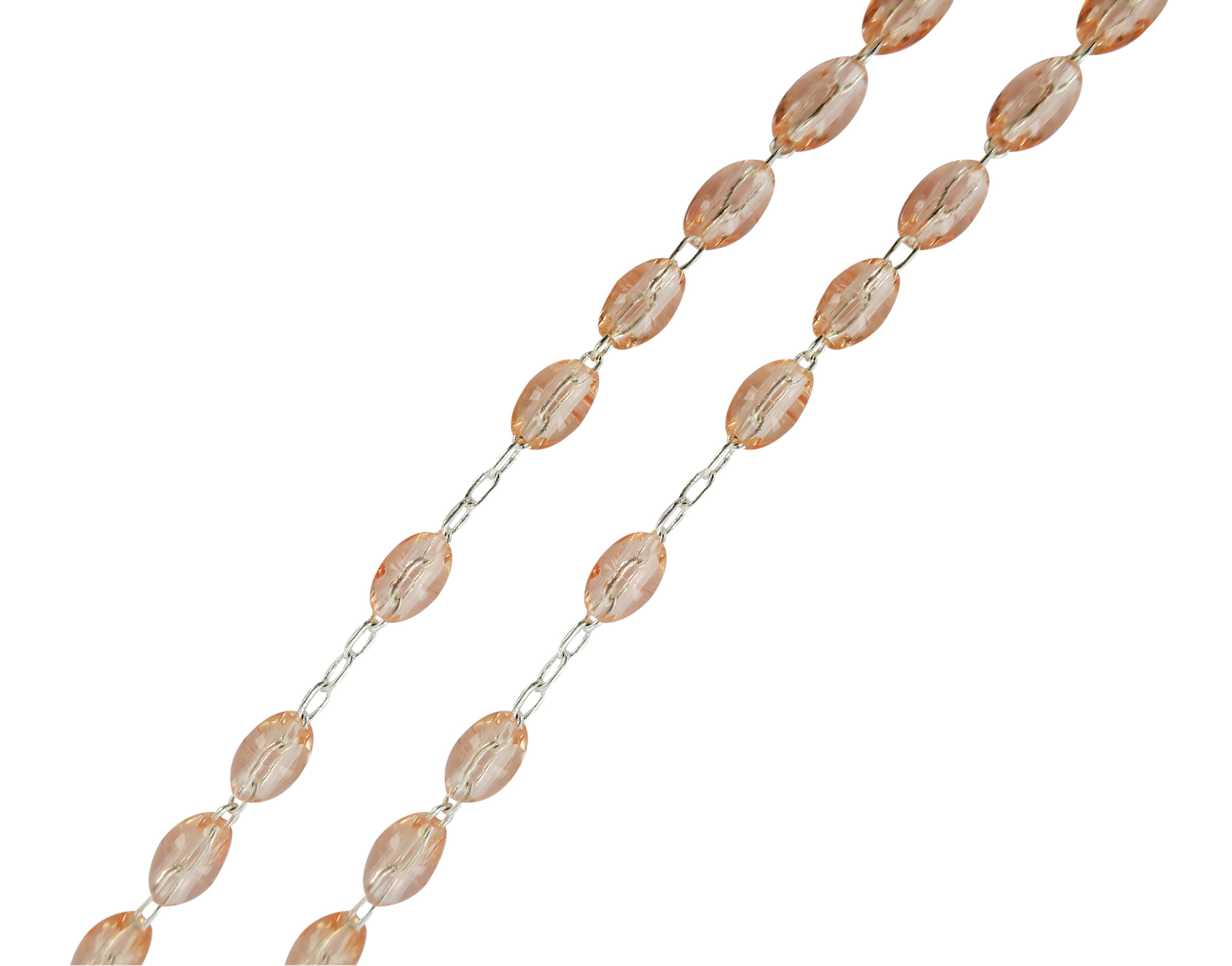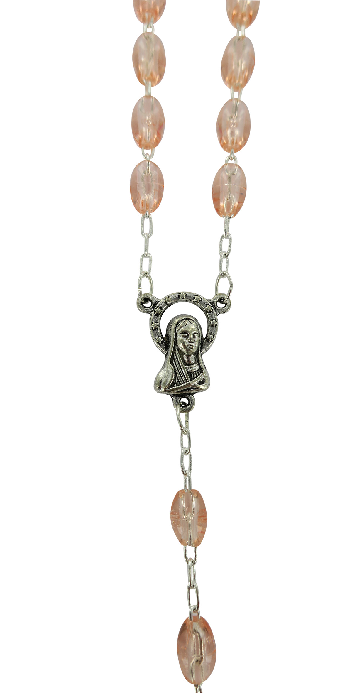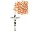 STOCK:Rosario in plastica ovale rosa trasparente con legatura a macchina