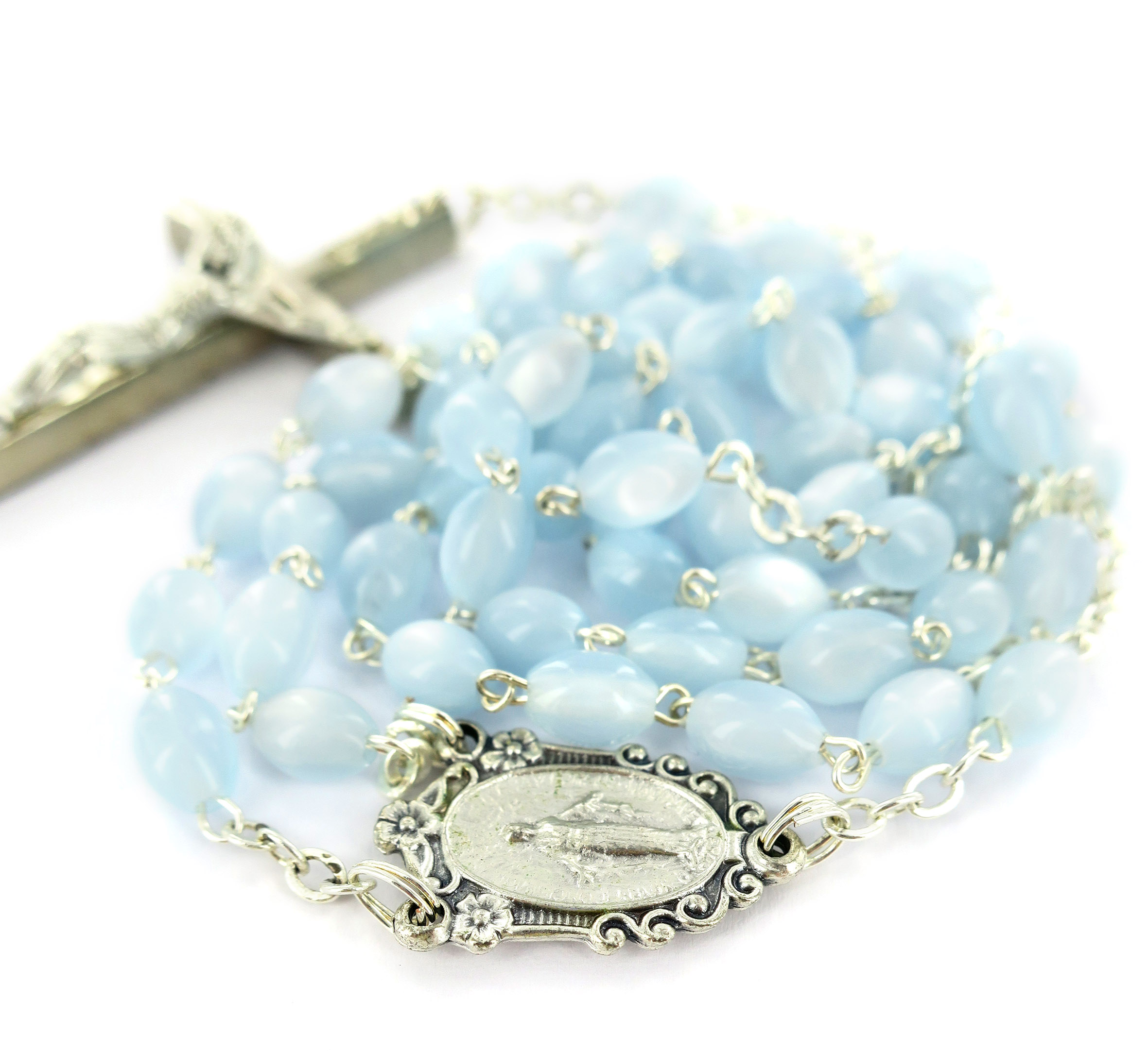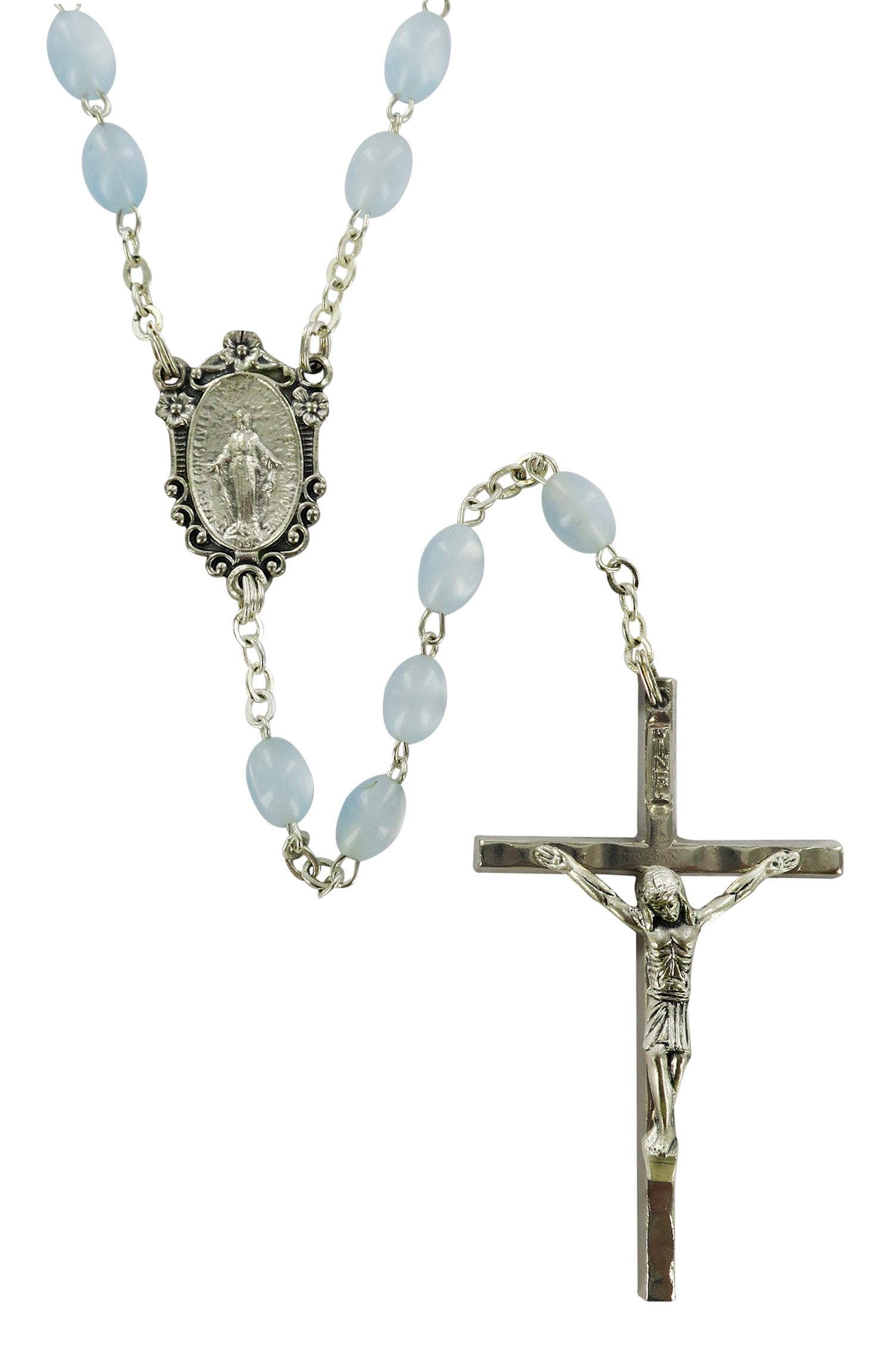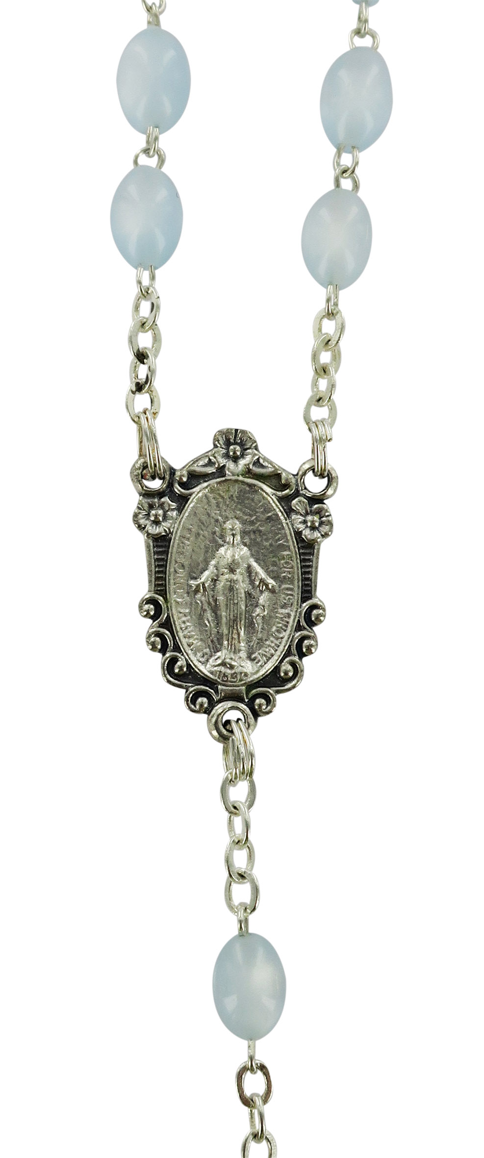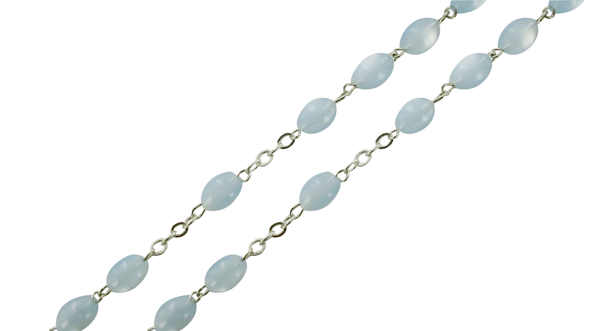 Rosario imitazione madreperla ovale mm 4 legatura ottone argentato - azzurro