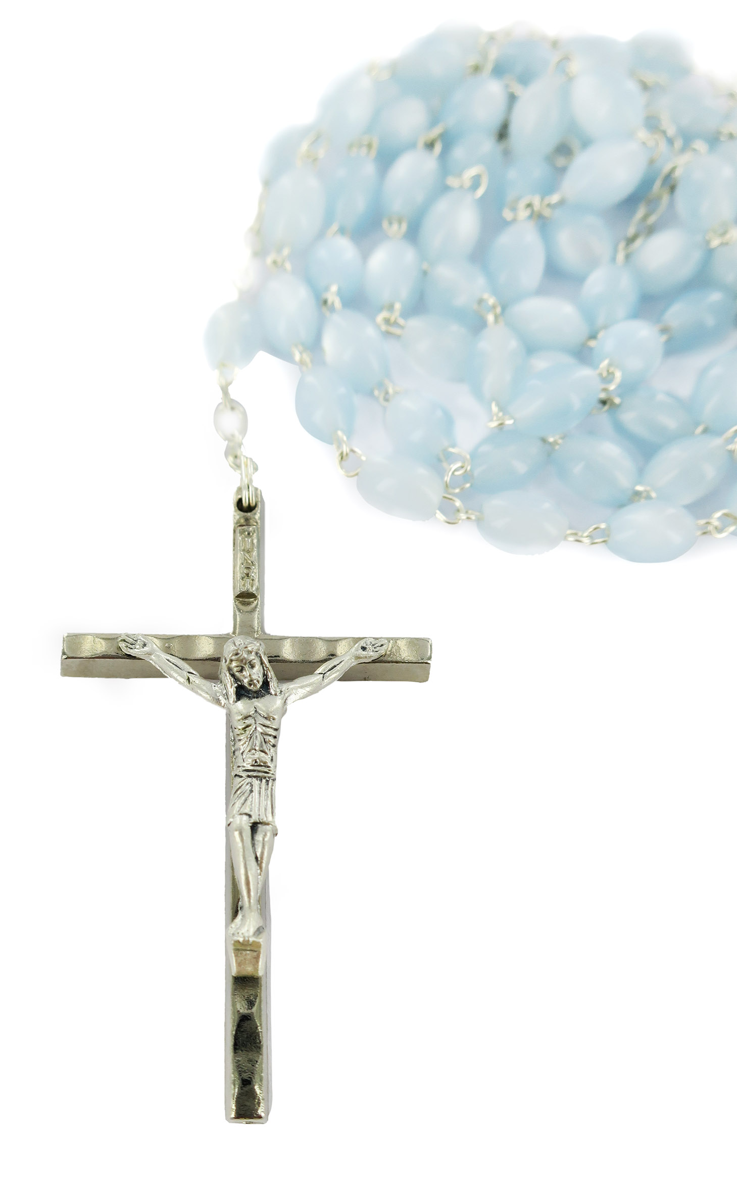 Rosario imitazione madreperla ovale mm. 4 con legatura in ottone argentato - azzurro