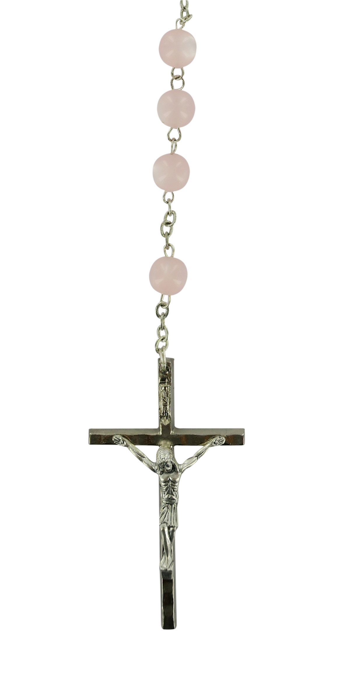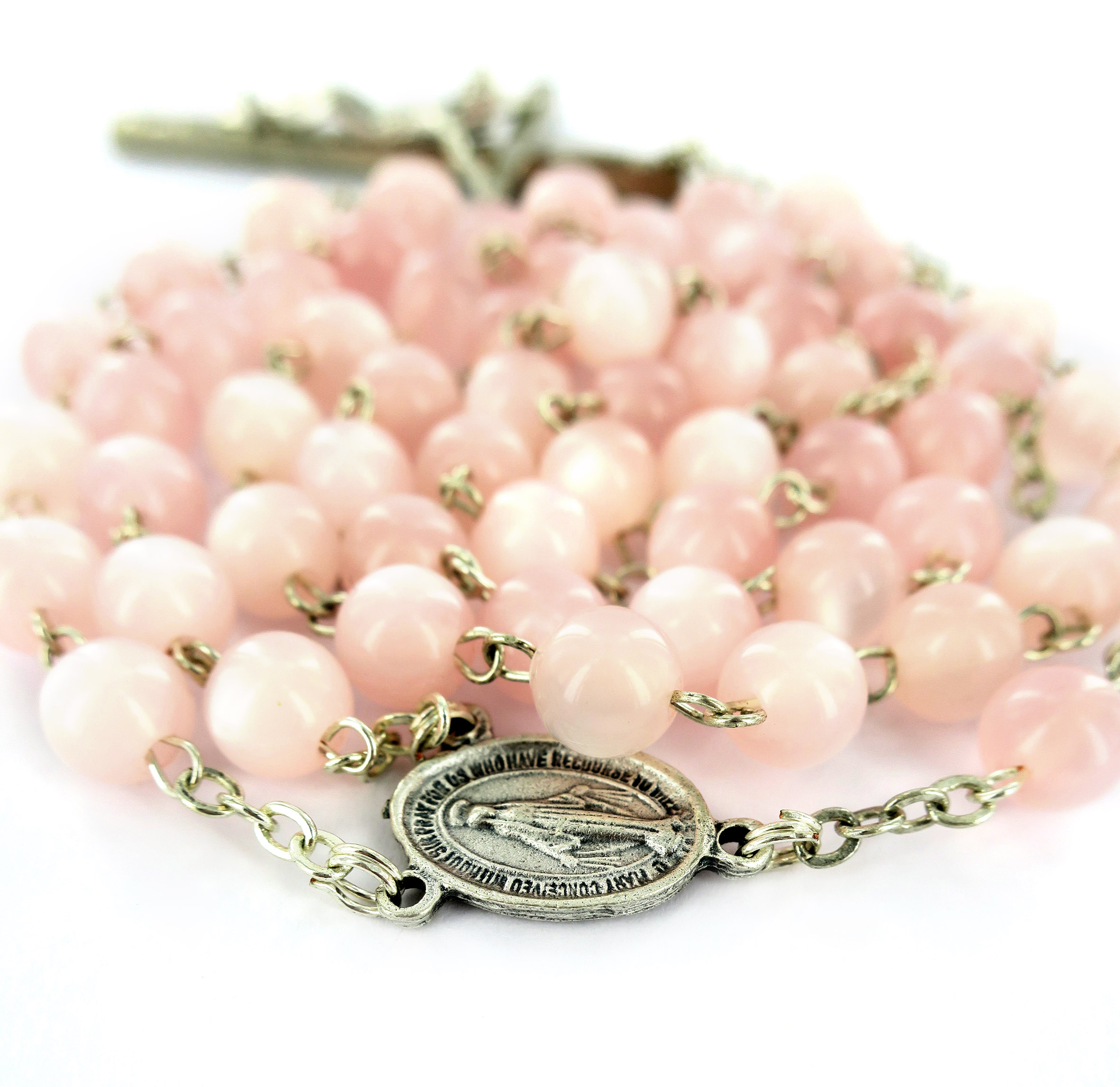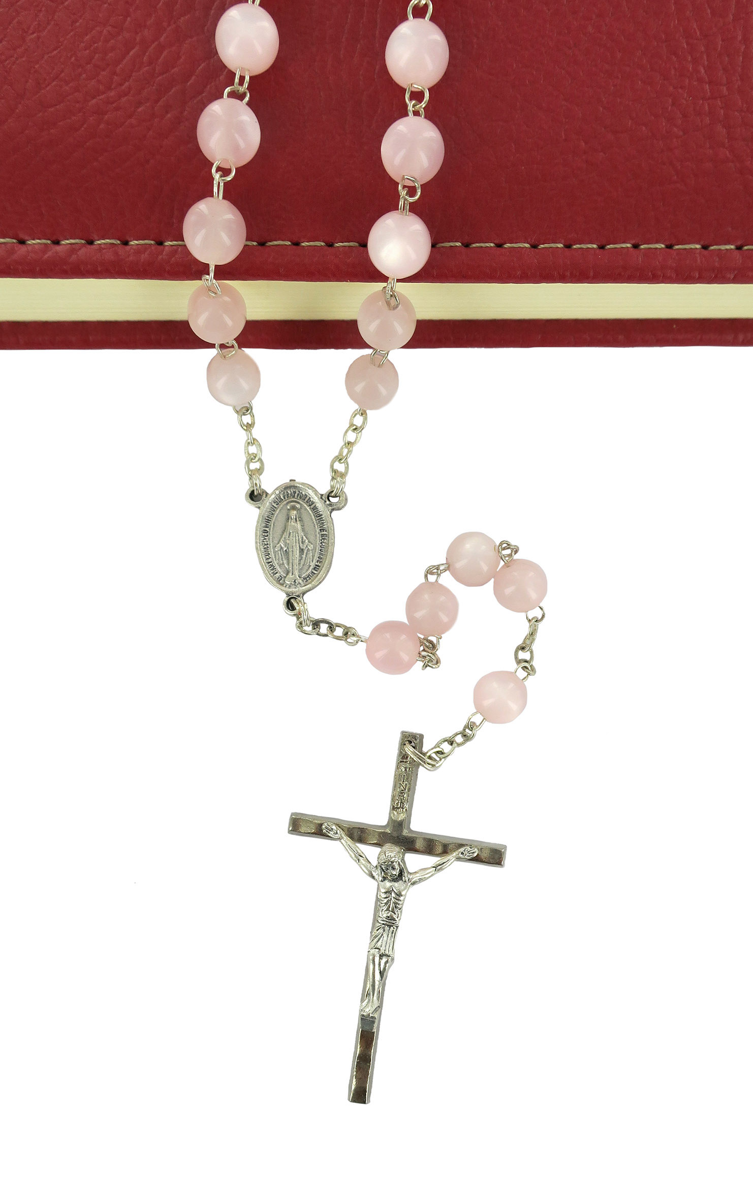 Rosario imitazione madreperla tondo con diametro mm. 7 - rosa (in Stock)