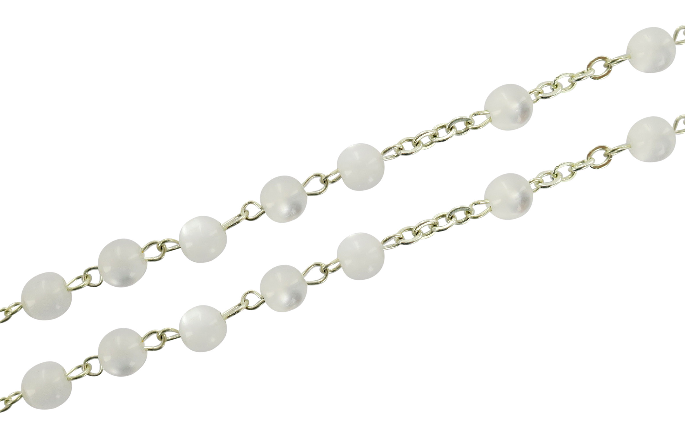 Rosario imitazione madreperla tondo mm 4 legatura ottone argentato - bianco