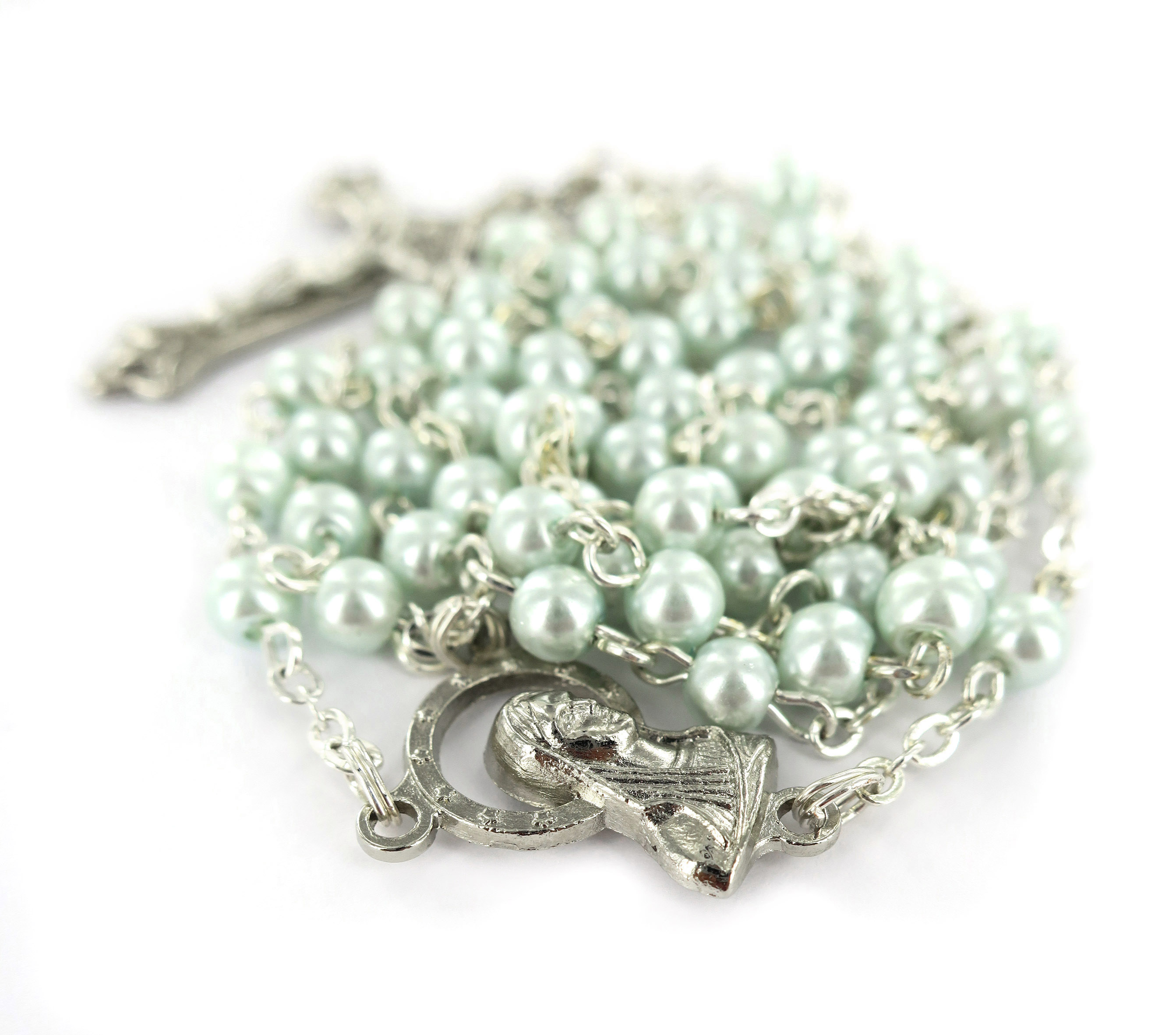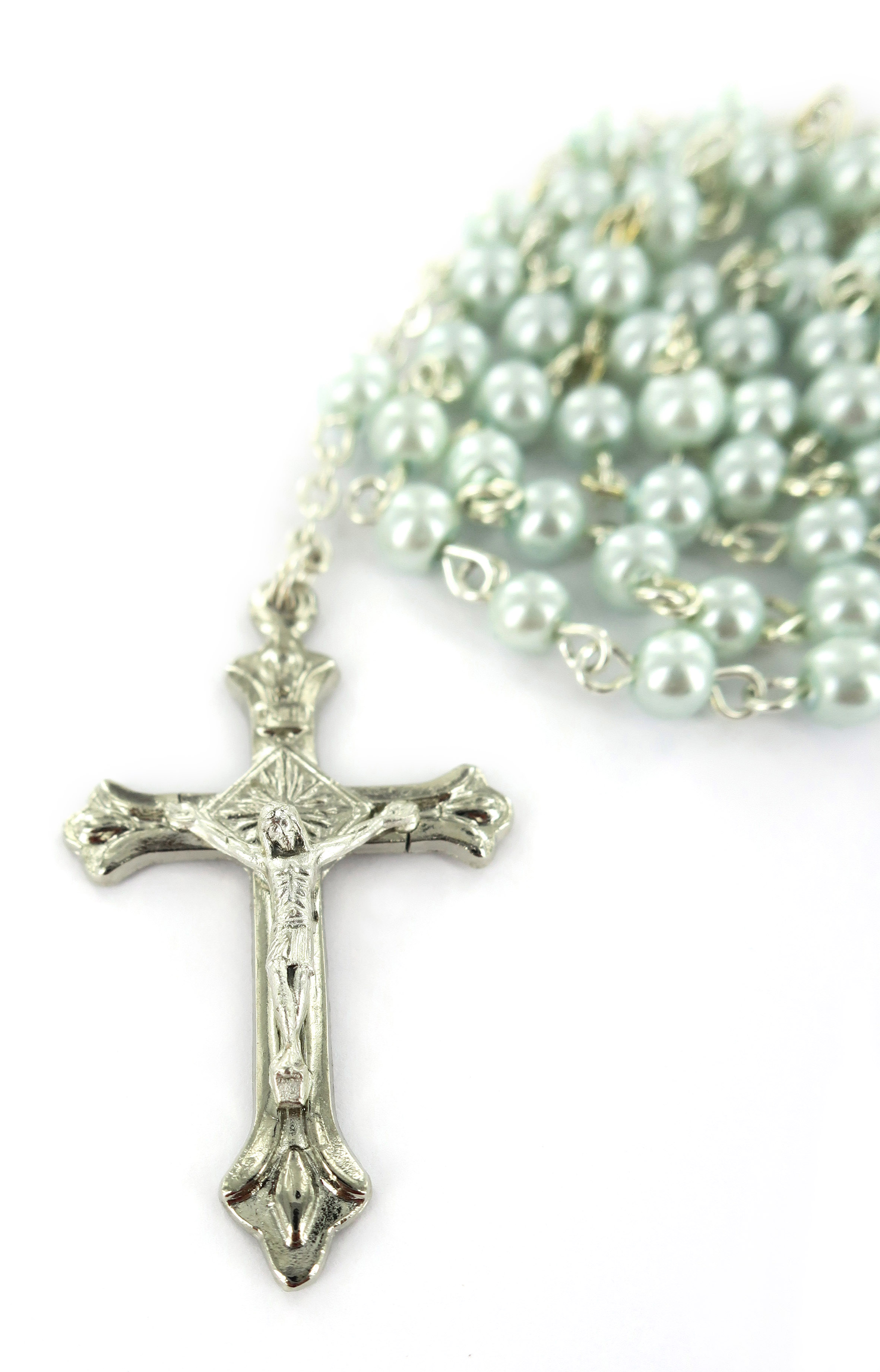 Rosario imitazione perla in vetro con diametro 4 mm. - azzurro