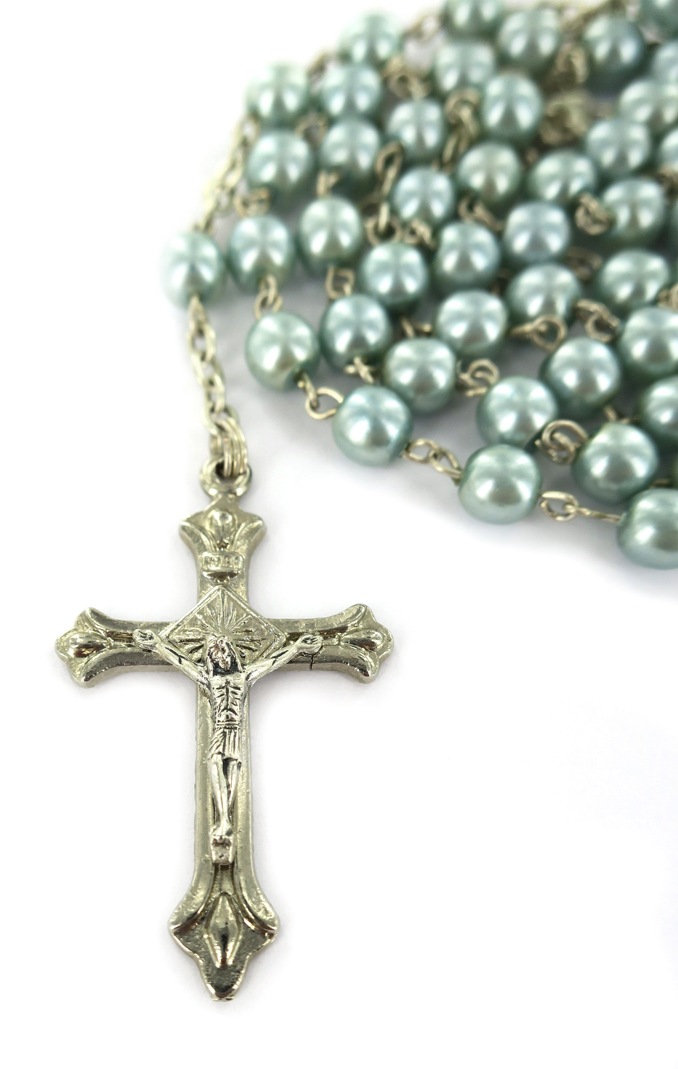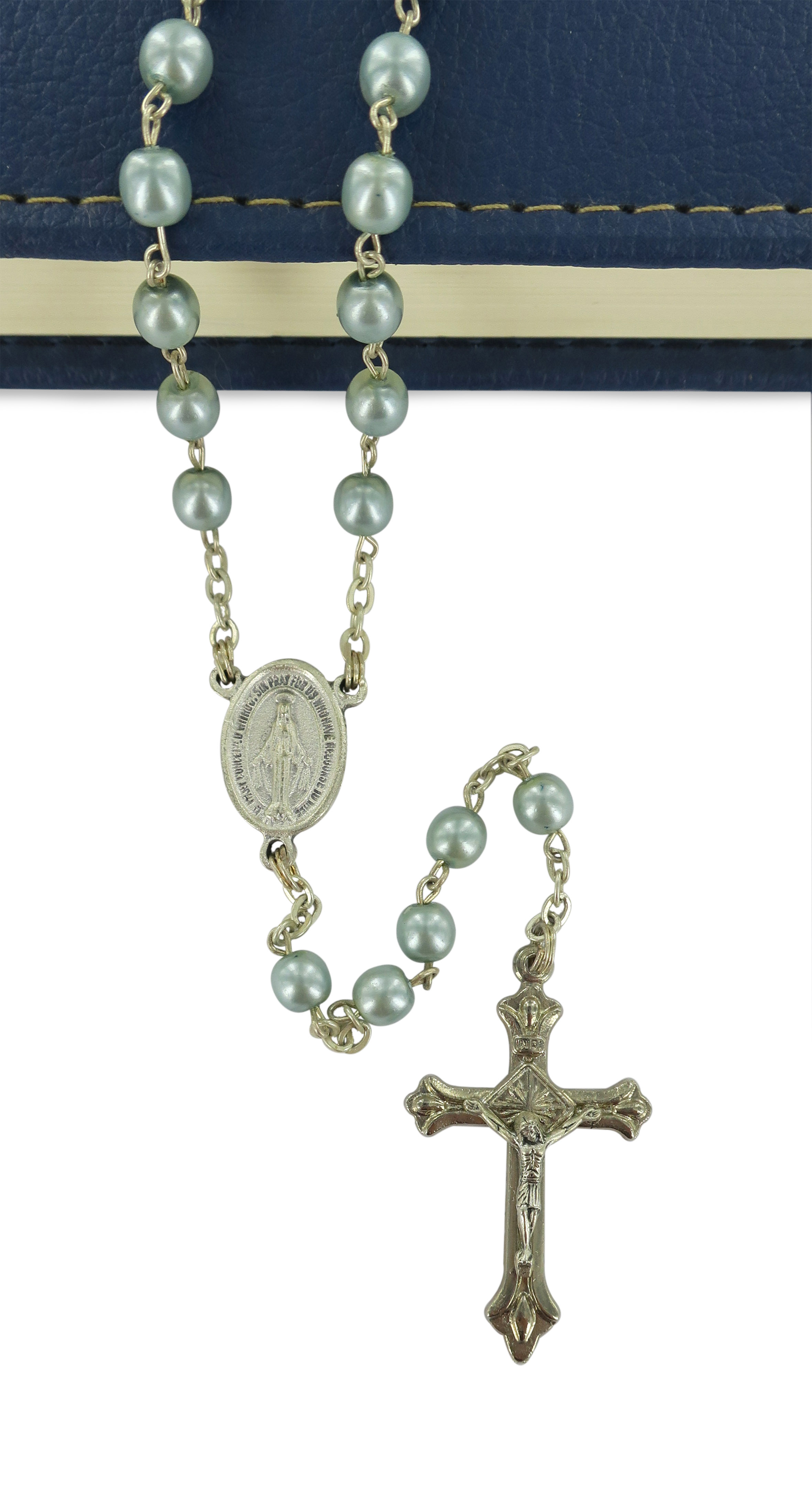 Rosario imitazione perla vetro Ø 5 mm azzurro