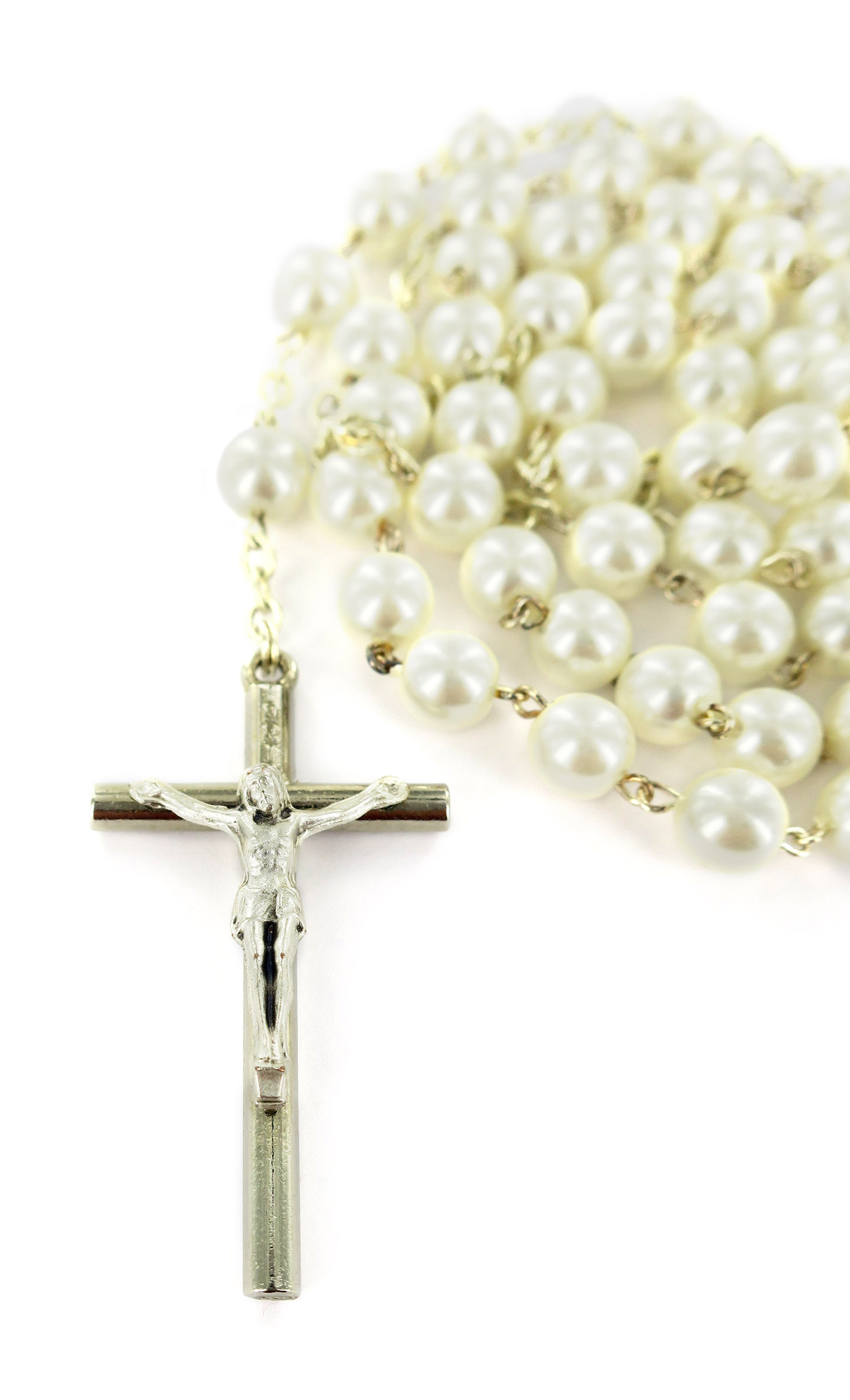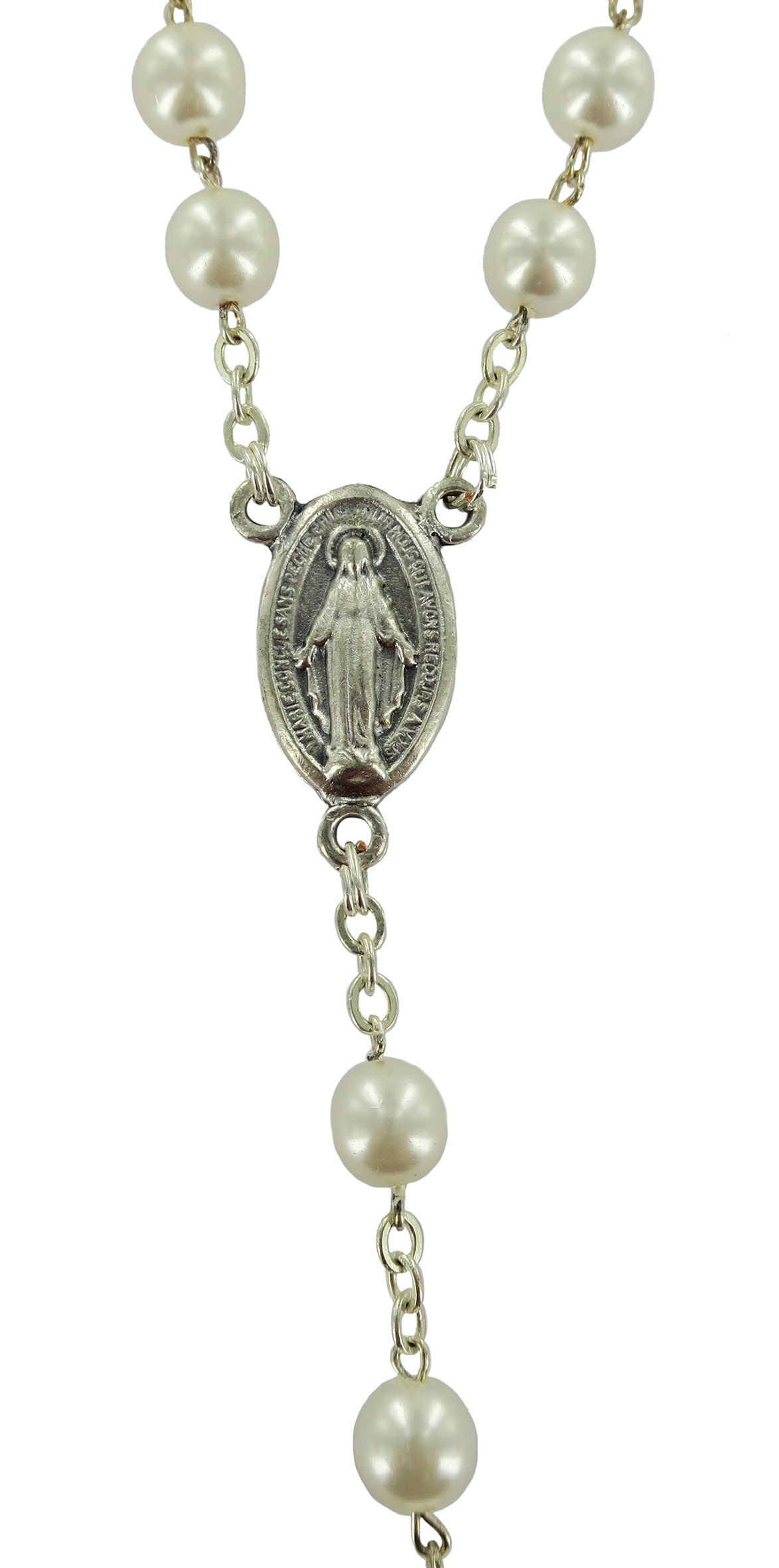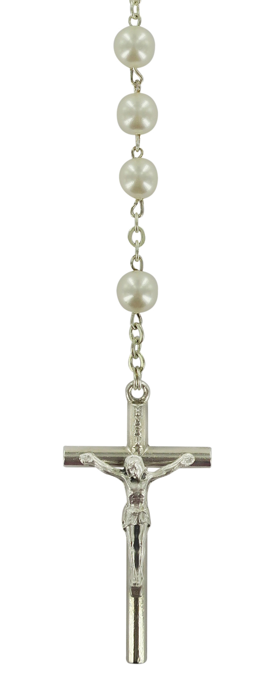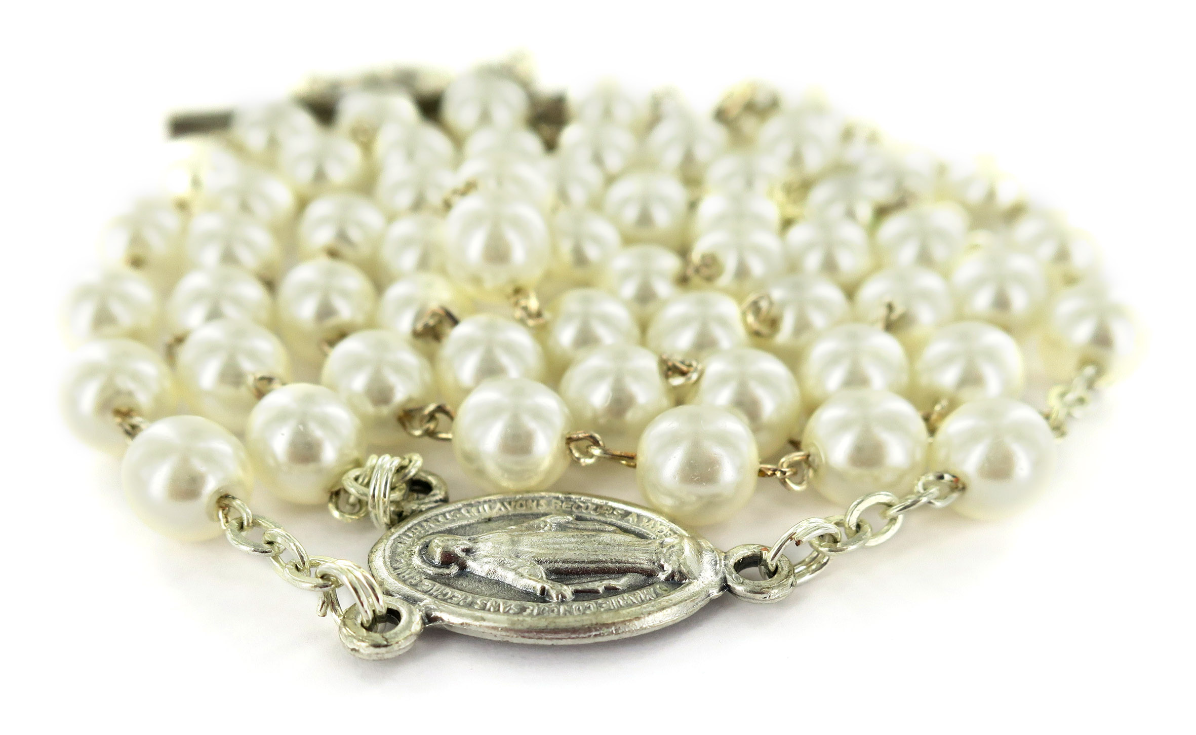 Rosario imitazione perla in vetro con diametro 6 mm. - bianco