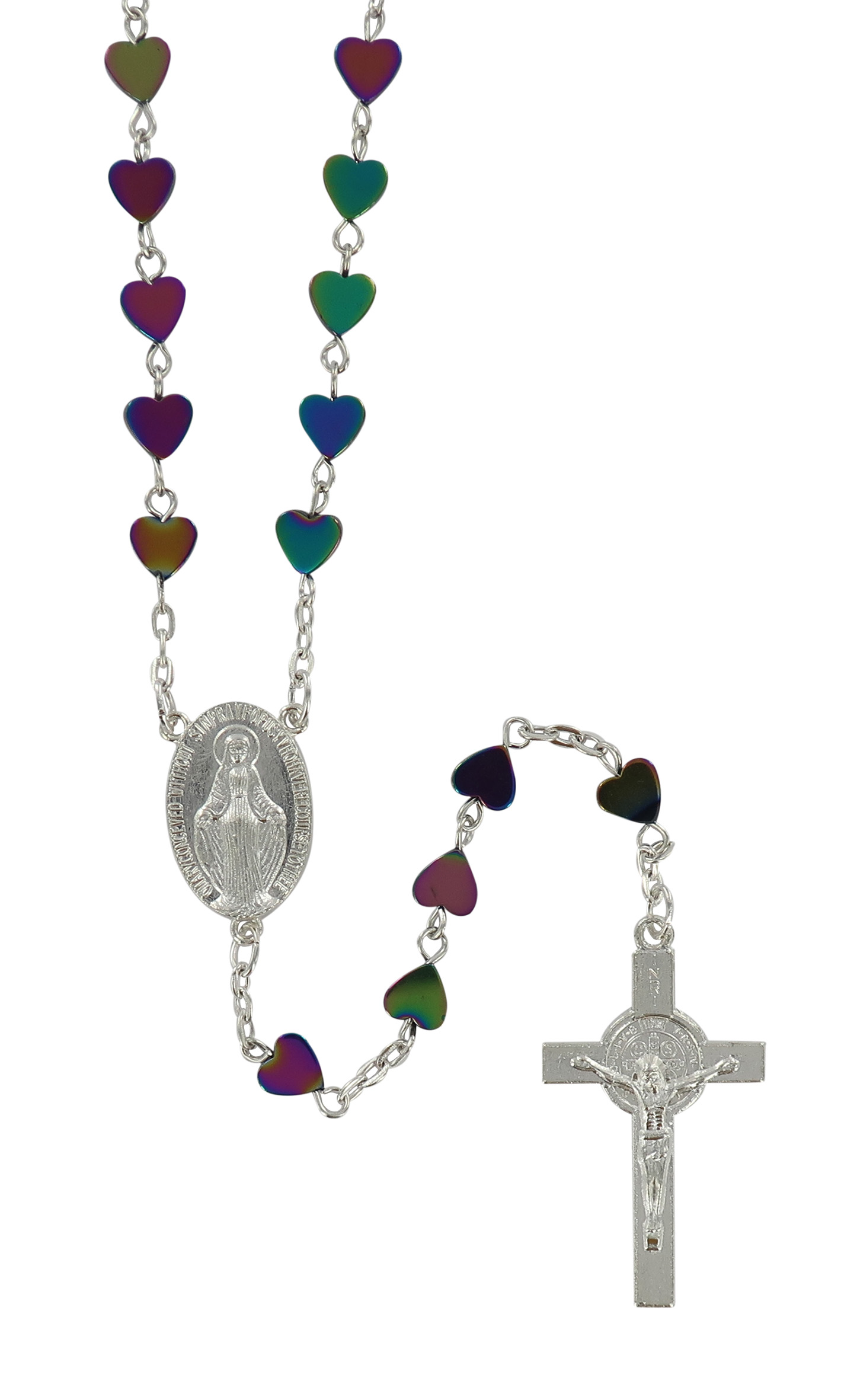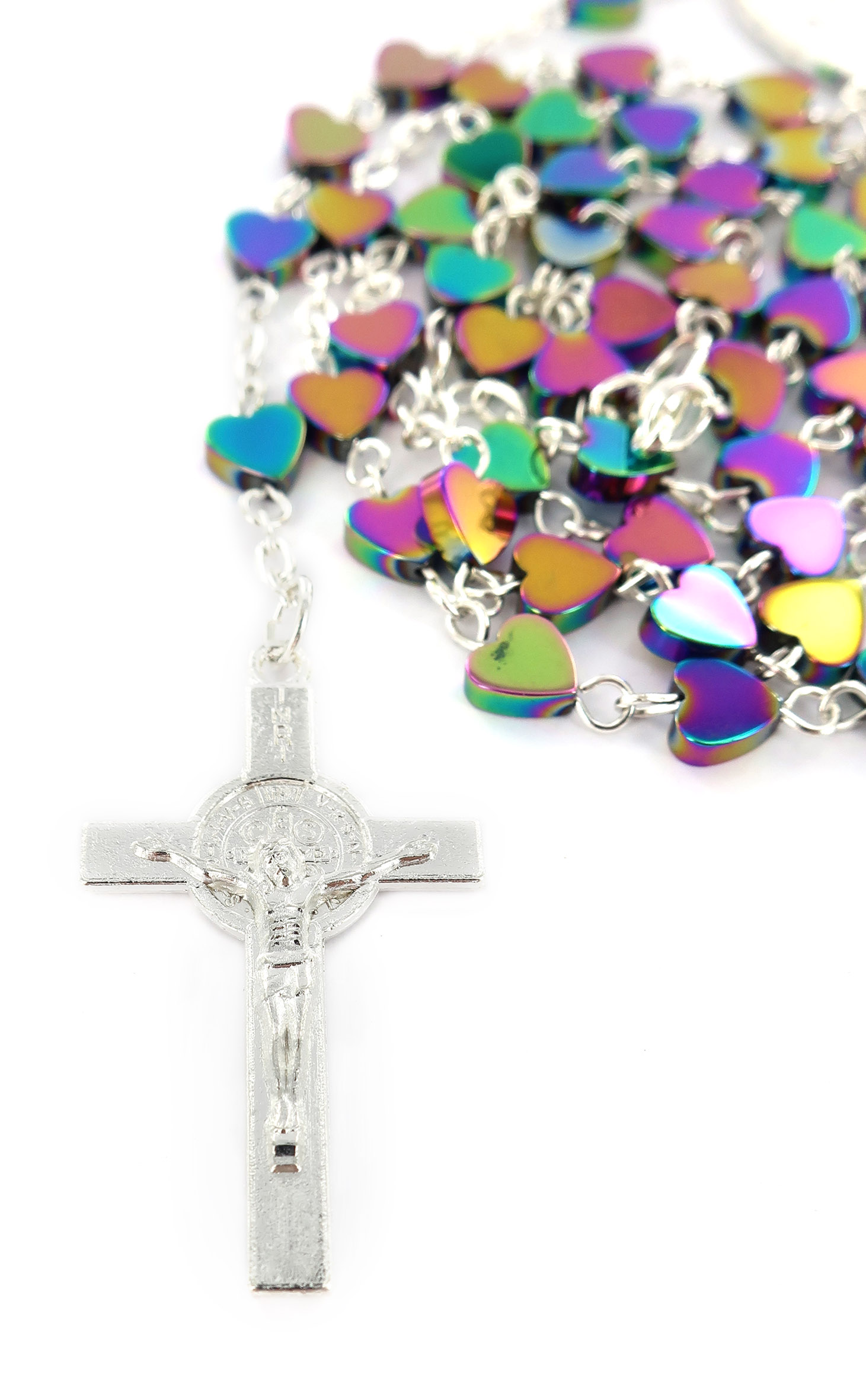Rosario con Cuoricini Colorati in Confezione Regalo, Plastica e Metallo, Multicolore