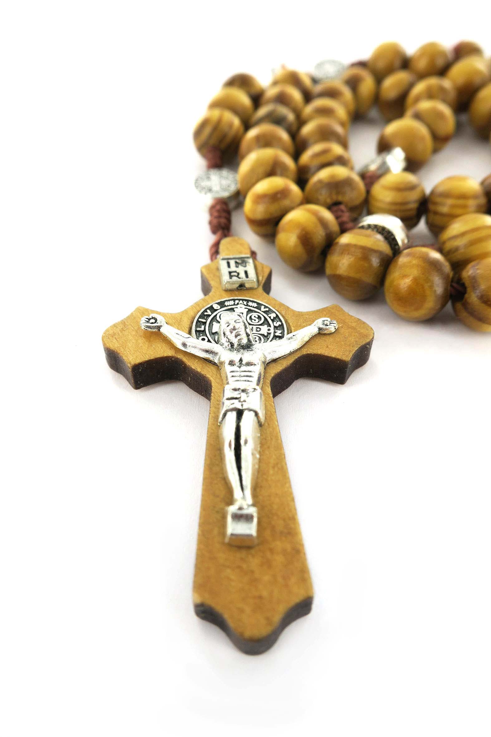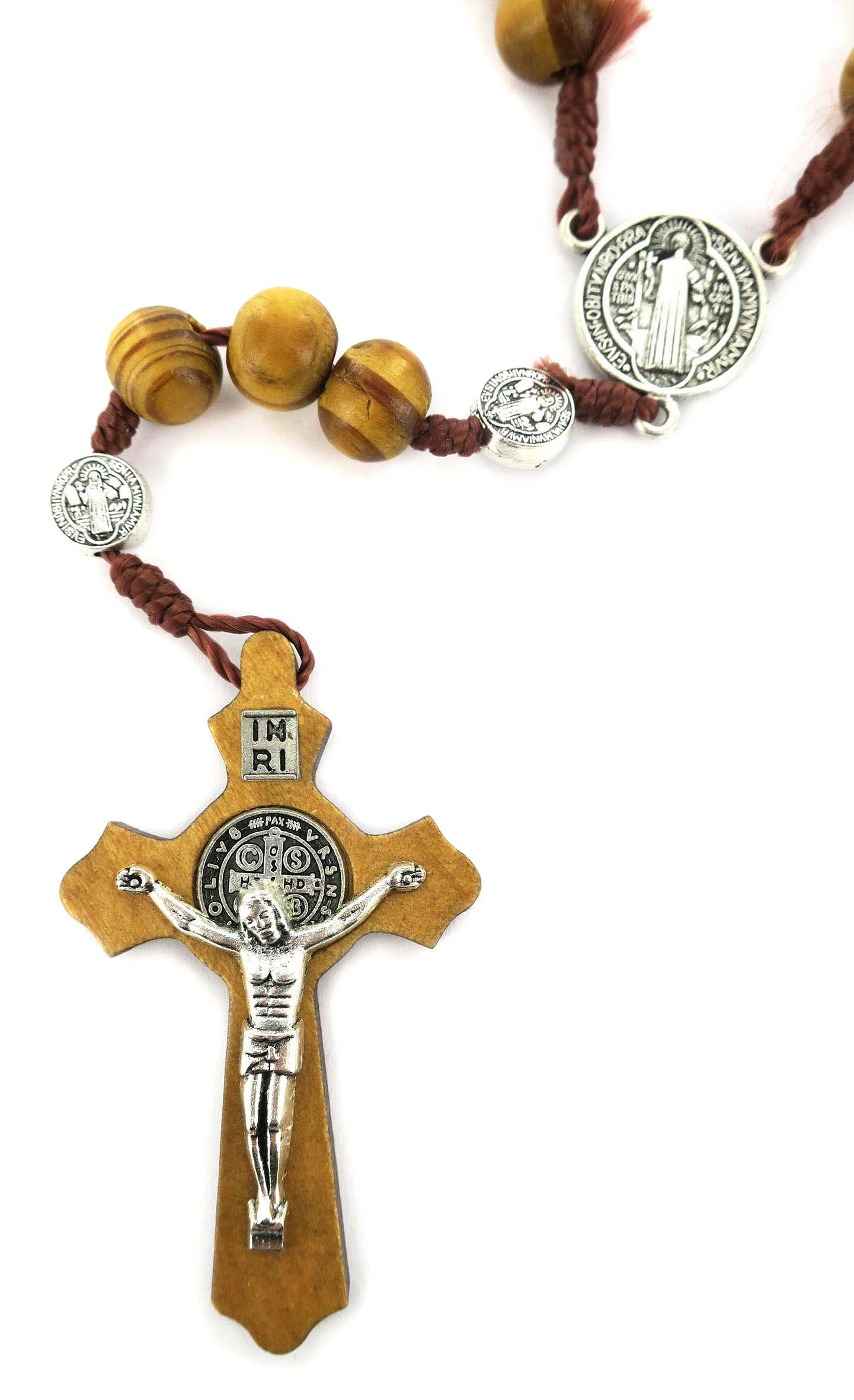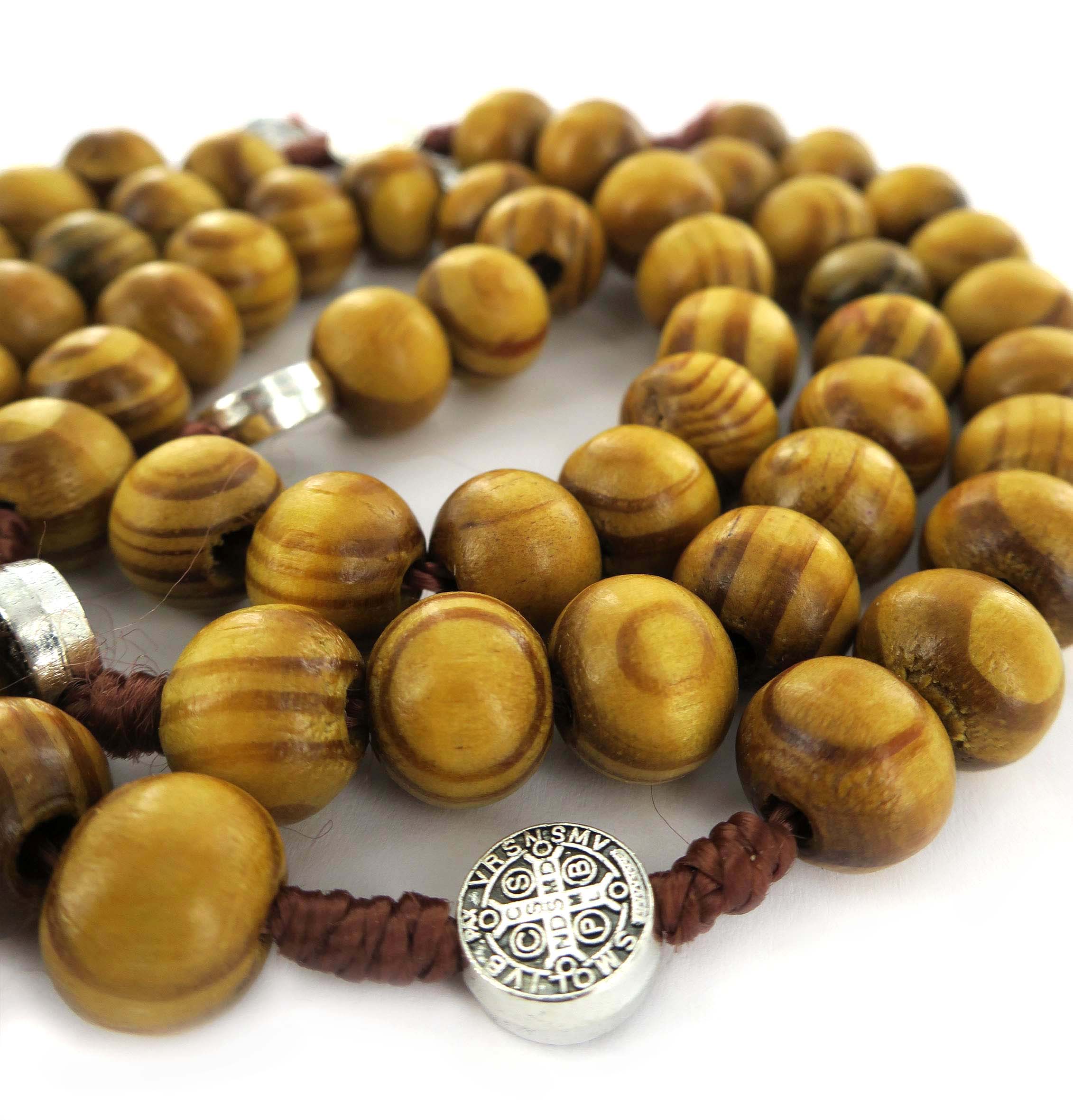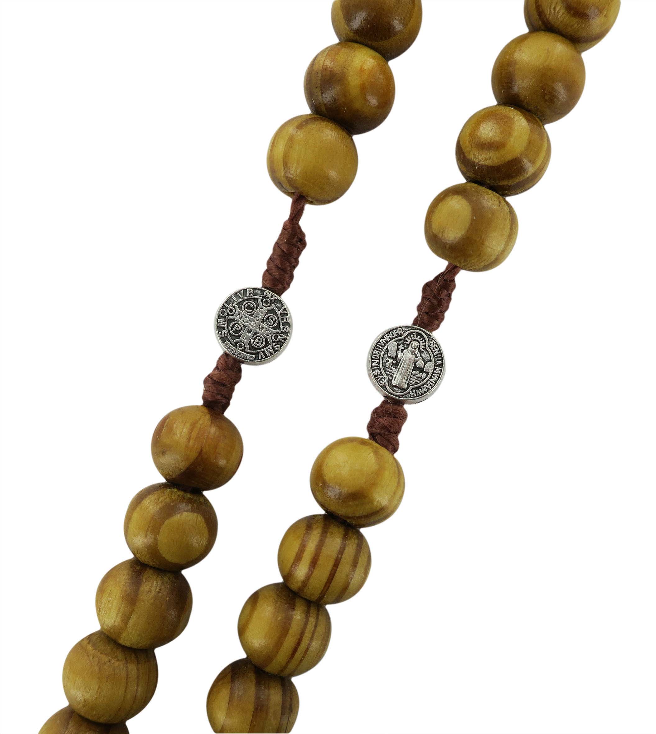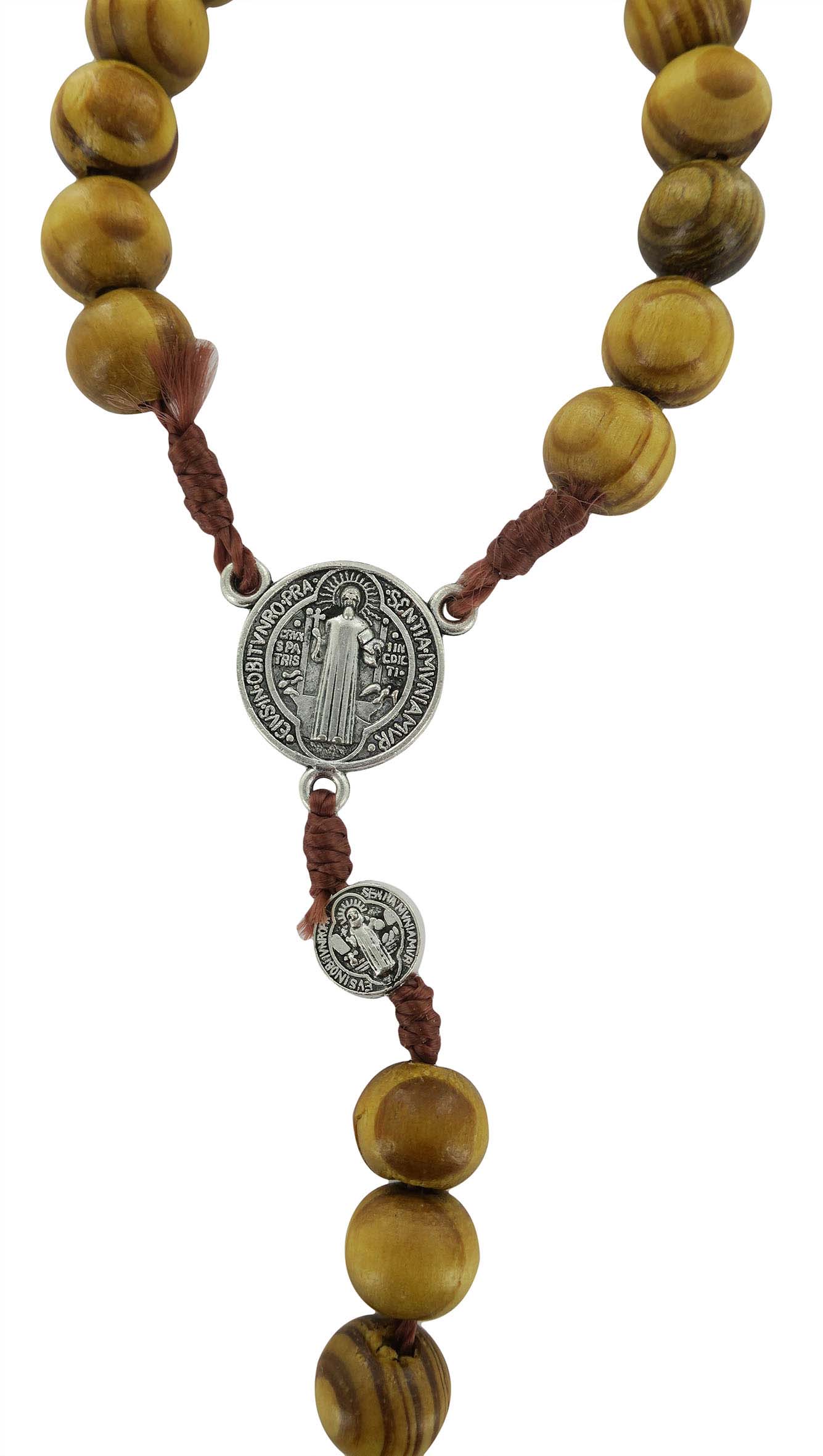 Rosario di San Benedetto in Legno d'Ulivo per Preghiera, Rosario Cattolico Resistente con Legatura Fatta a Mano, Medaglia S. Benedetto e Grano Tondo in Legno Ulivo Diametro 10mm