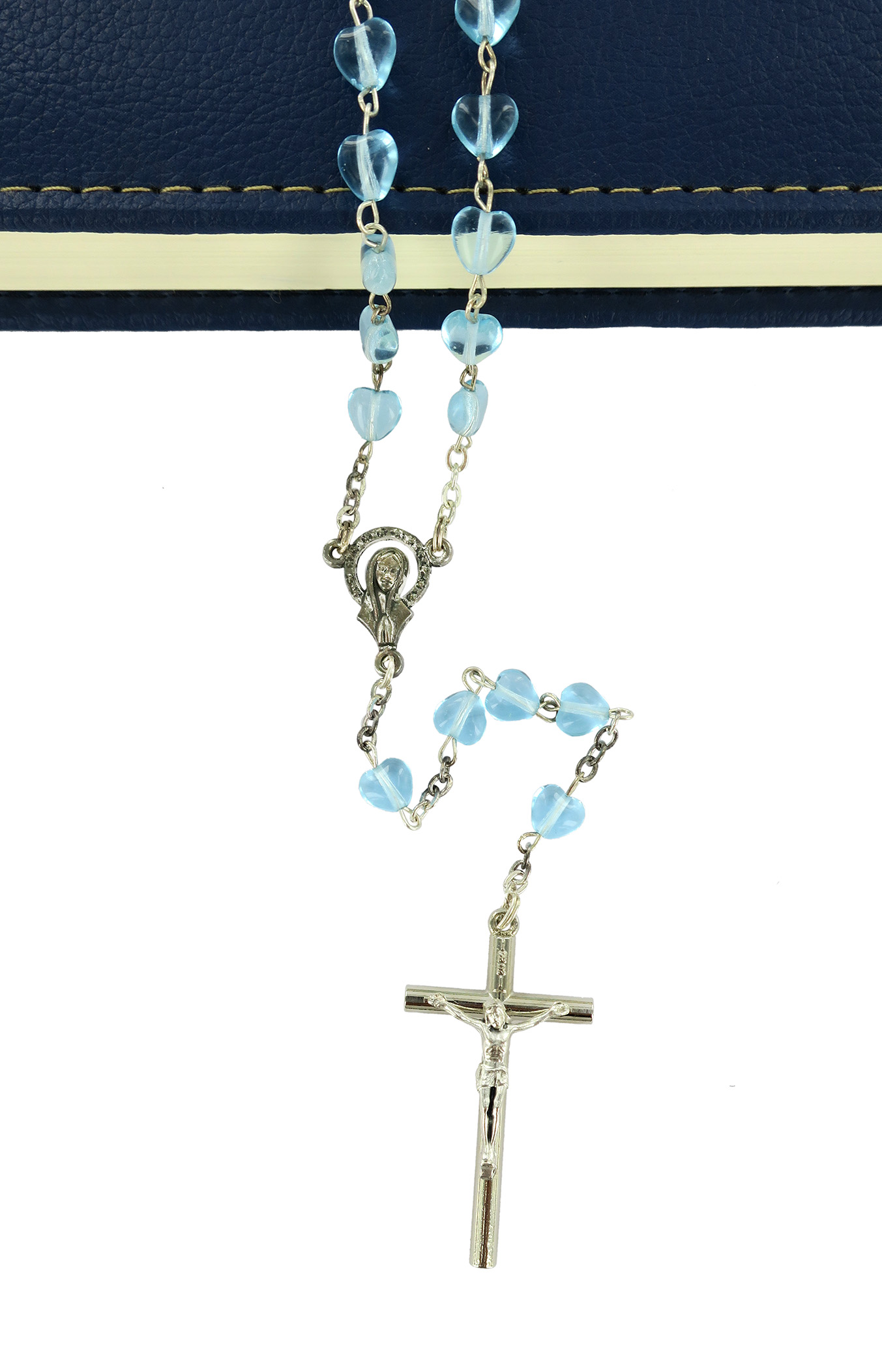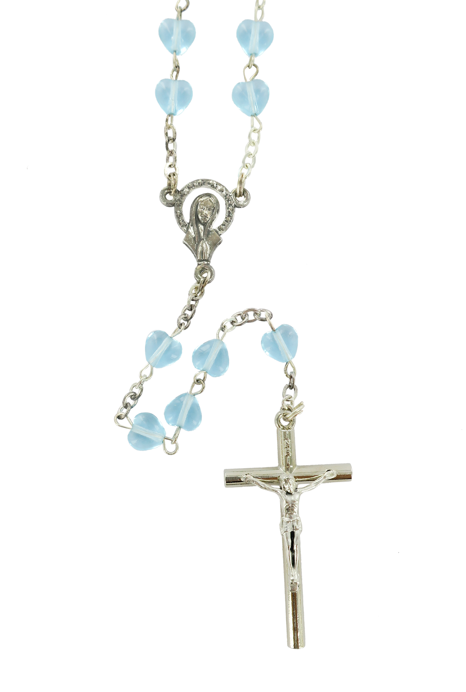 Rosario cuoricino vetro acquamarina Ø 6 mm