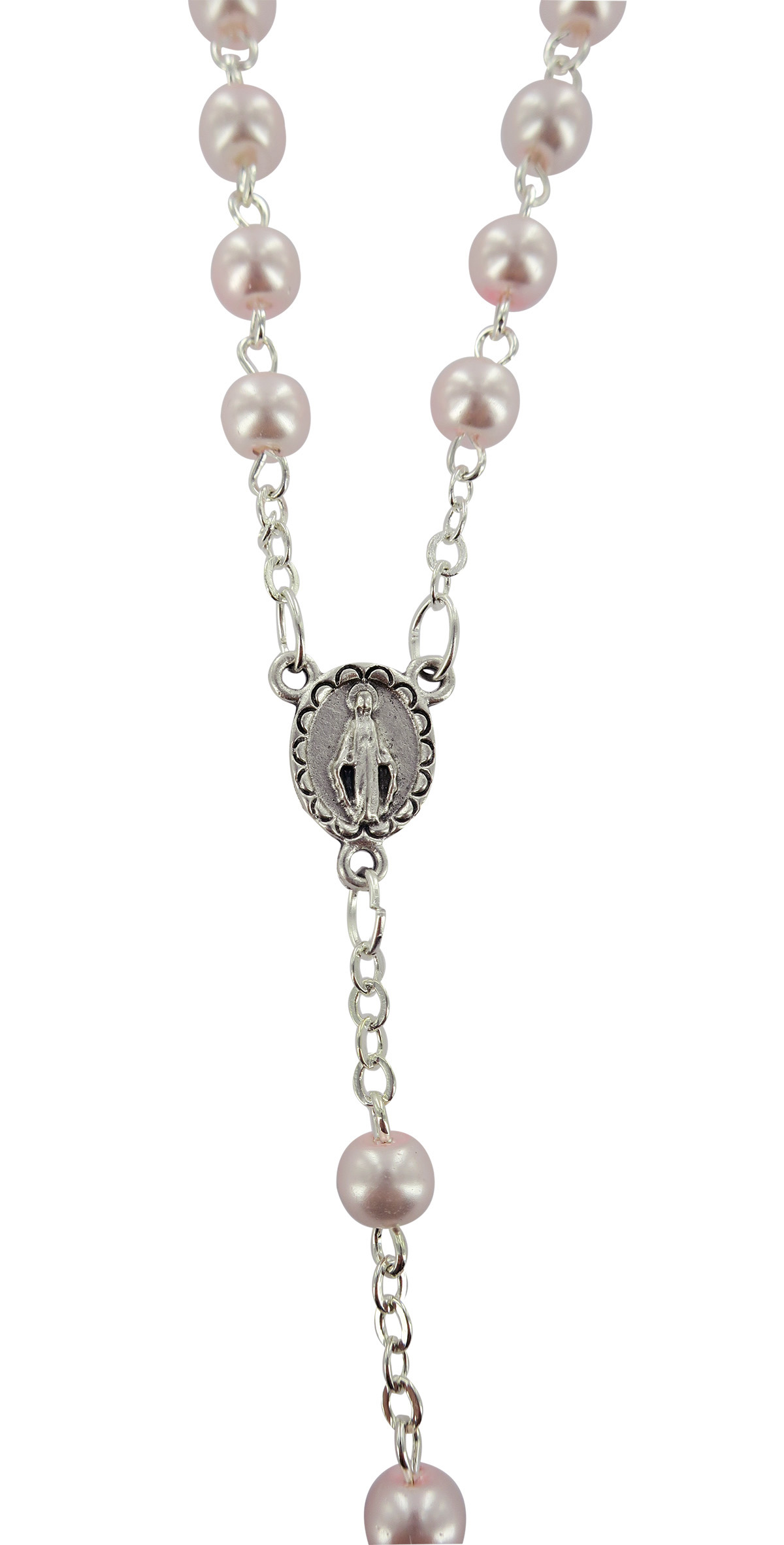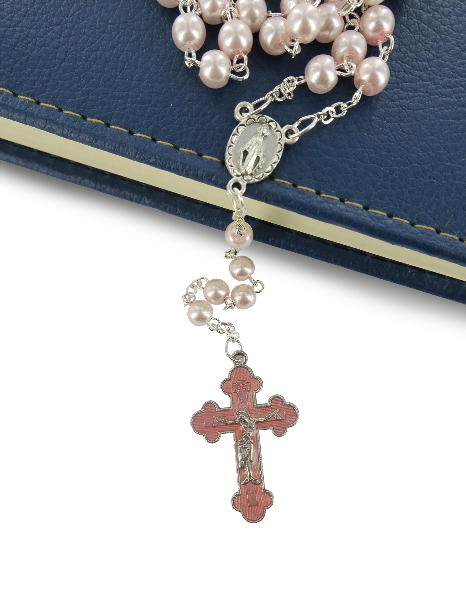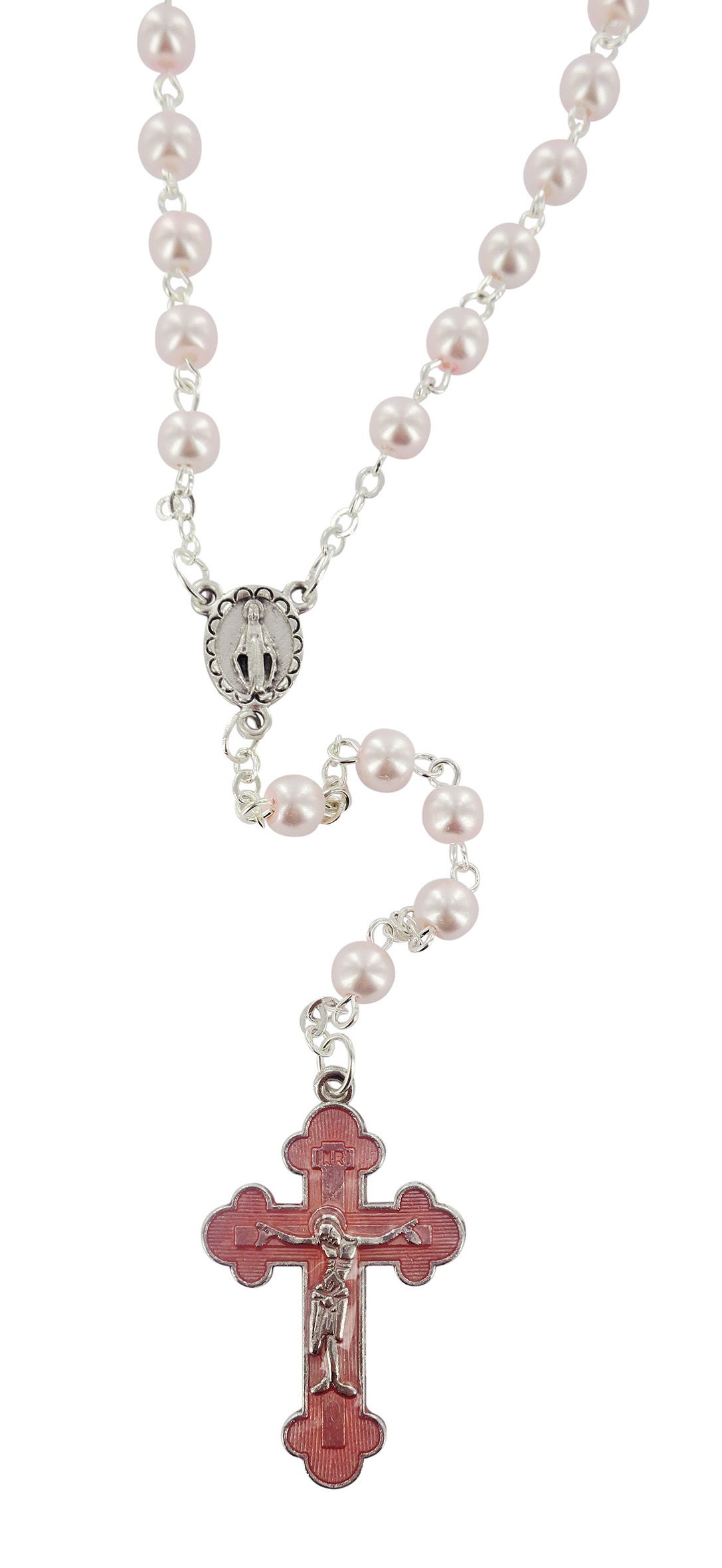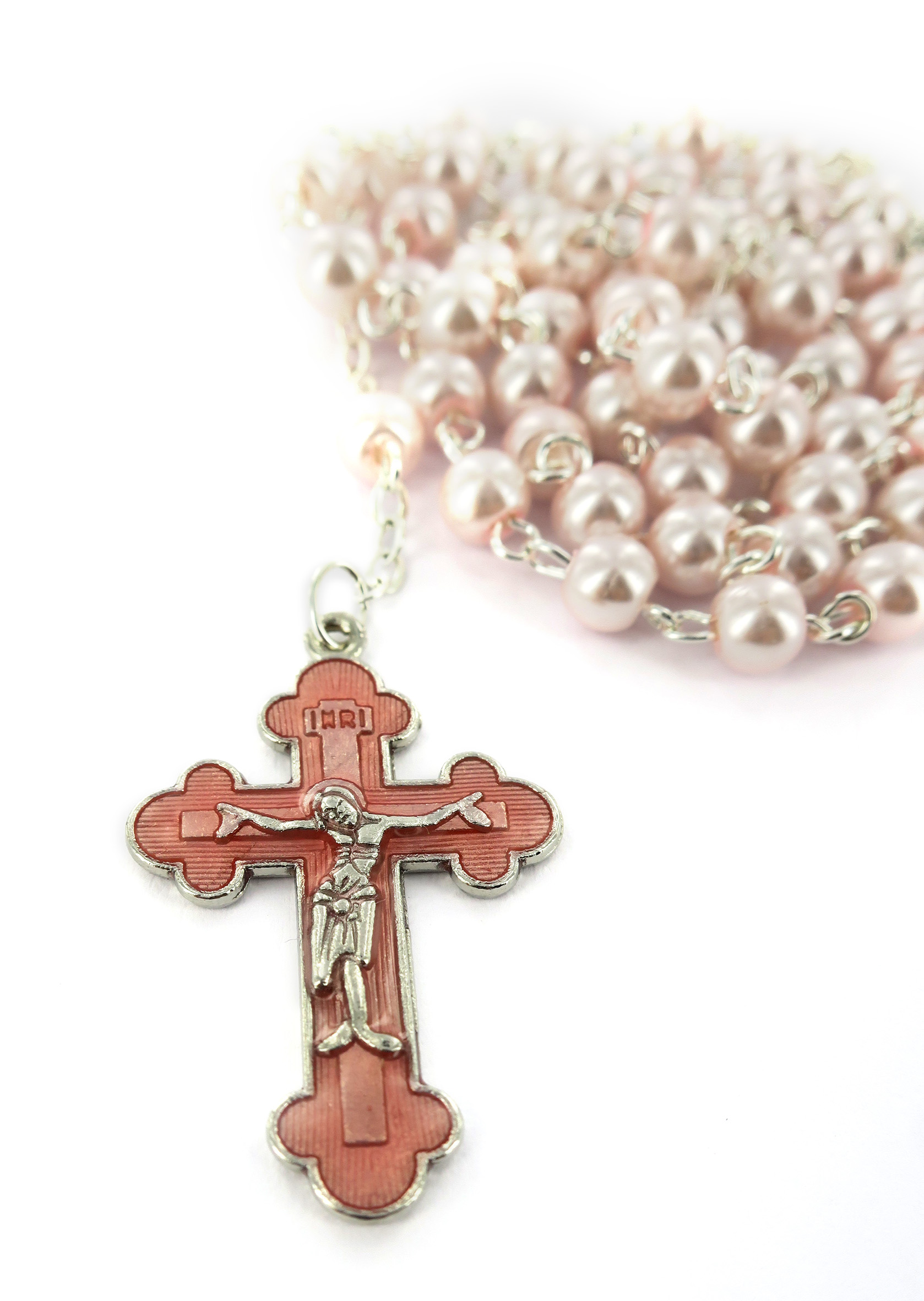 Rosario perlina rosa mm 5 con croce smaltata