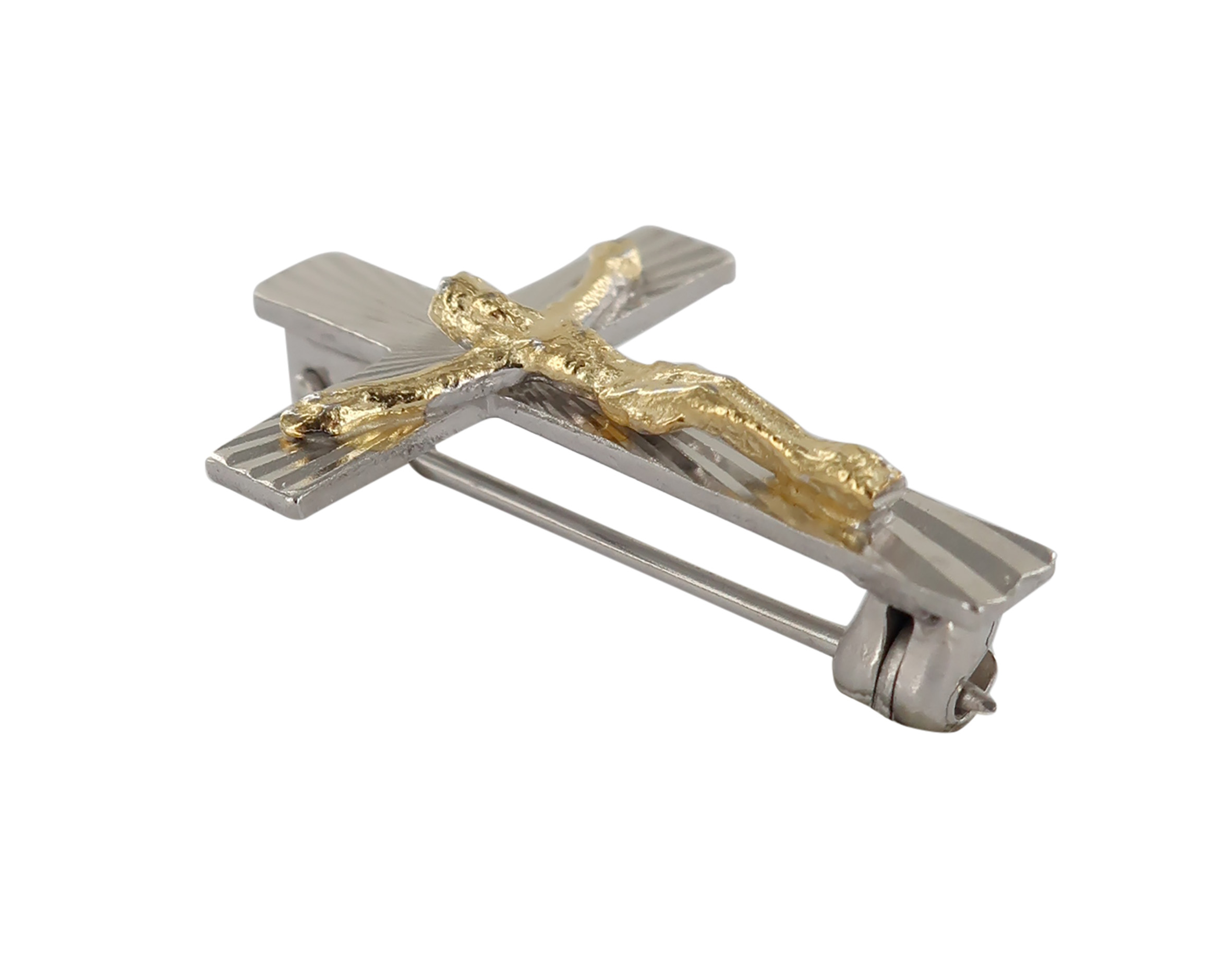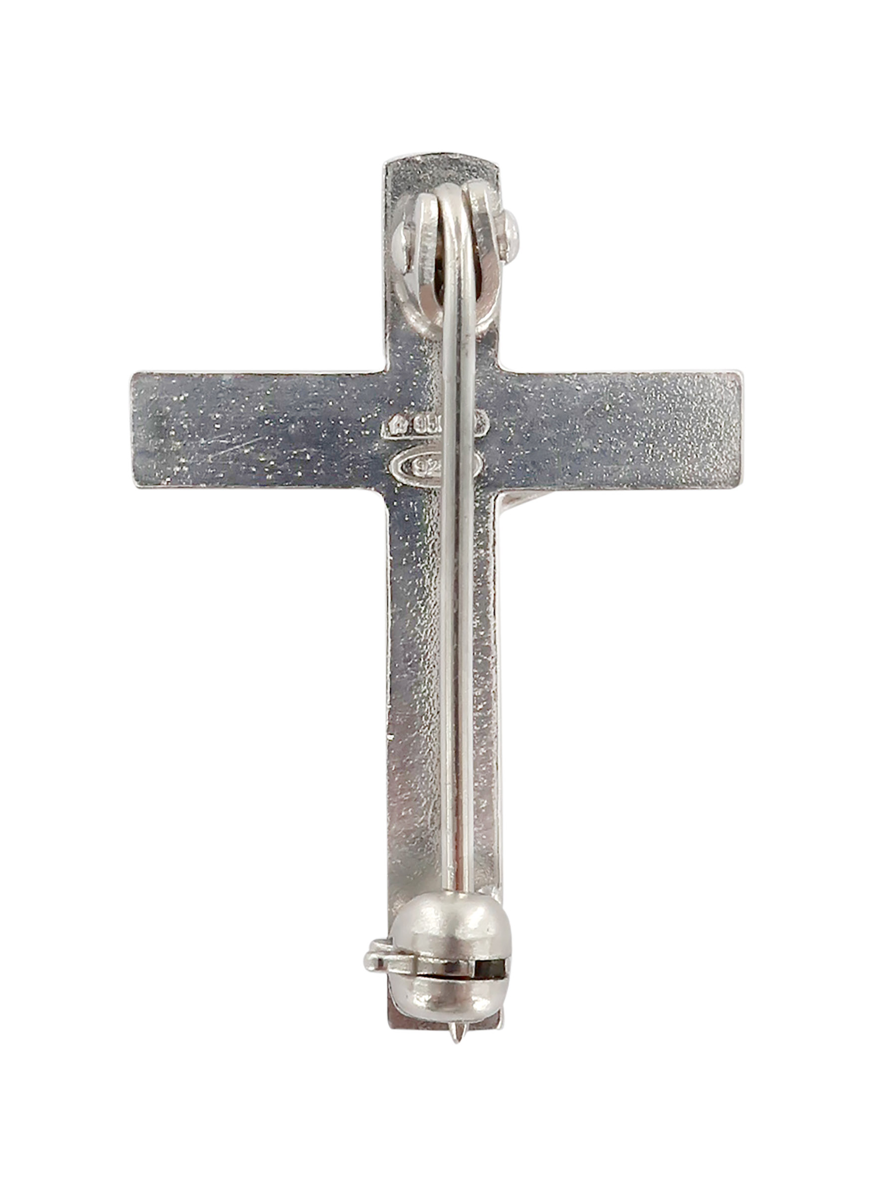 Croce distintivo con spilla con Cristo riportato in argento 925 - 2,6 cm