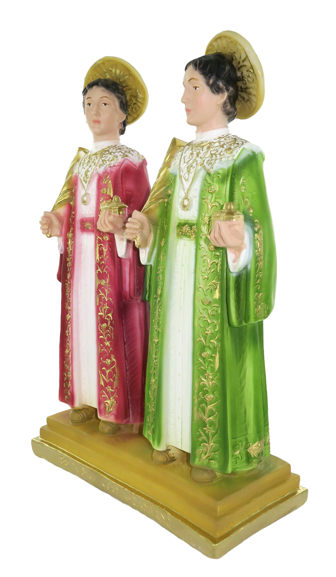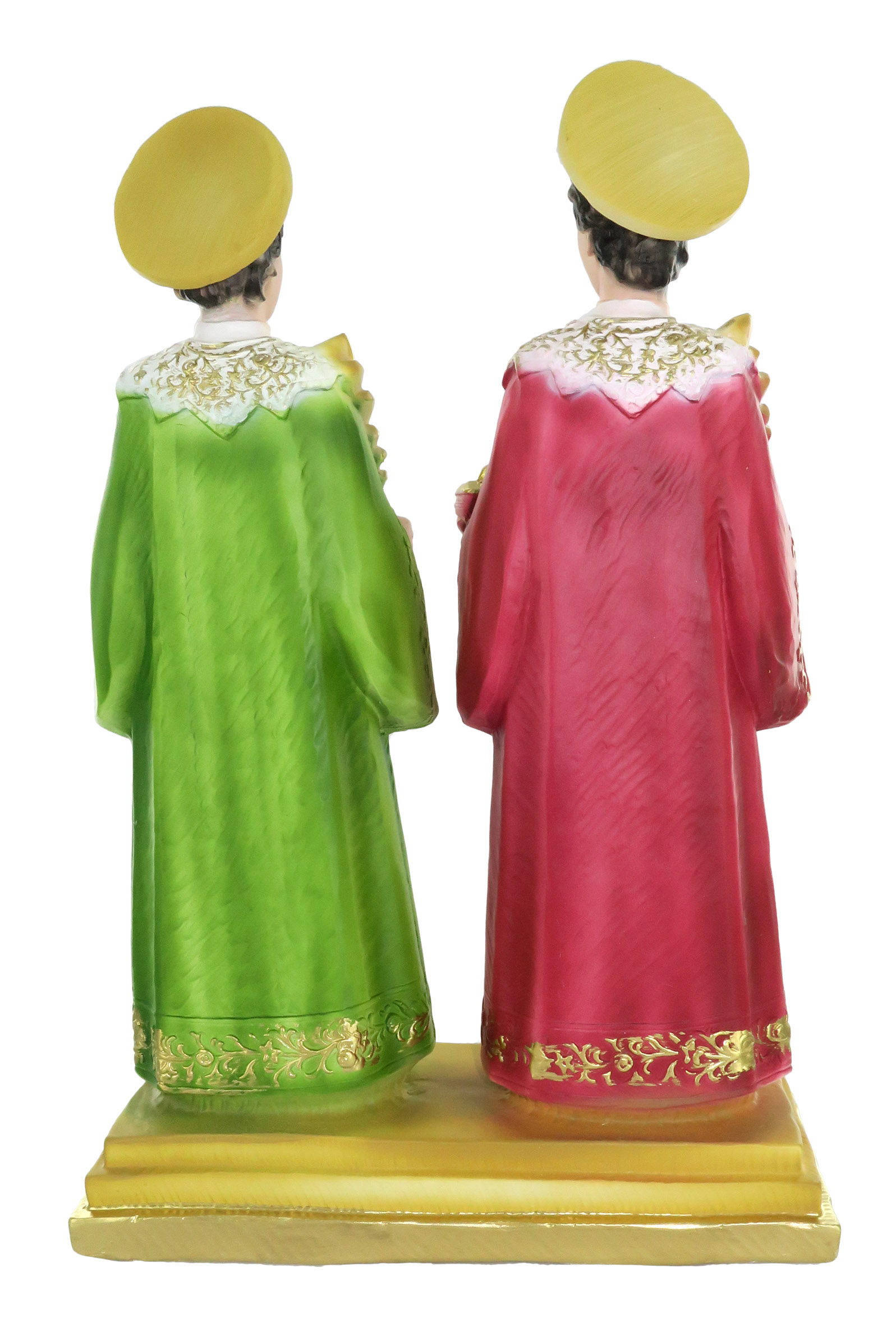Ferrari & Arrighetti Statua Cosma e Damiano Dipinta a Mano, Statua Religiosa Classica, Statua Religiosa per Nicchia / Vetrinetta / Chiesa, Gesso, 30 Cm