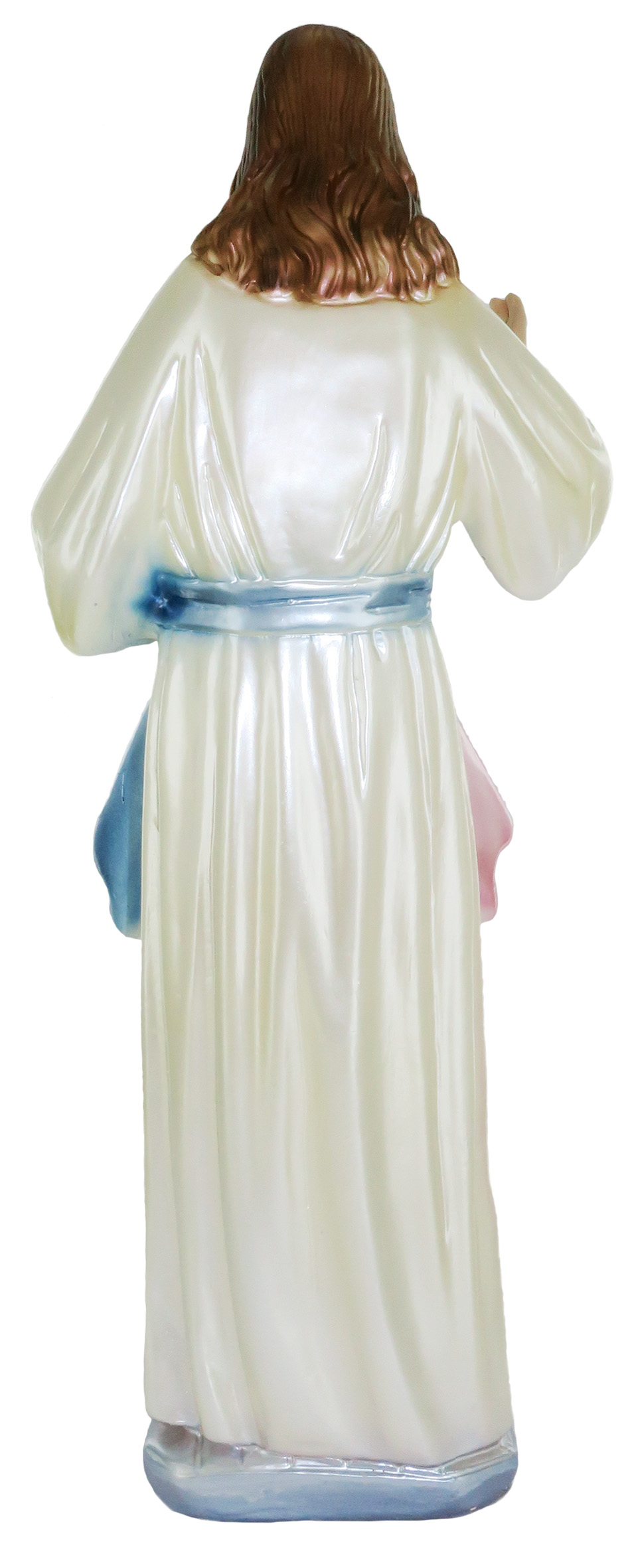 Questa statua di Gesù Misericordioso da 30 cm è realizzata artigianalmente in Italia e si distingue per la qualità della fattura e per il sapiente uso dei colori. L'effetto madreperlato rende le tinte molto lucenti e arricchisce la figura di suggestivi riflessi, donandole un aspetto elegante e pregevole. La statua Gesù Misericordioso è ideale per nicchie o ambienti dedicati al culto, ma può anche essere esposta in casa come soprammobile o in una vetrinetta. La luce delle fiammelle dei lumini o dei faretti esalterà l'effetto iridescente della sua rifinitura madreperlacea.