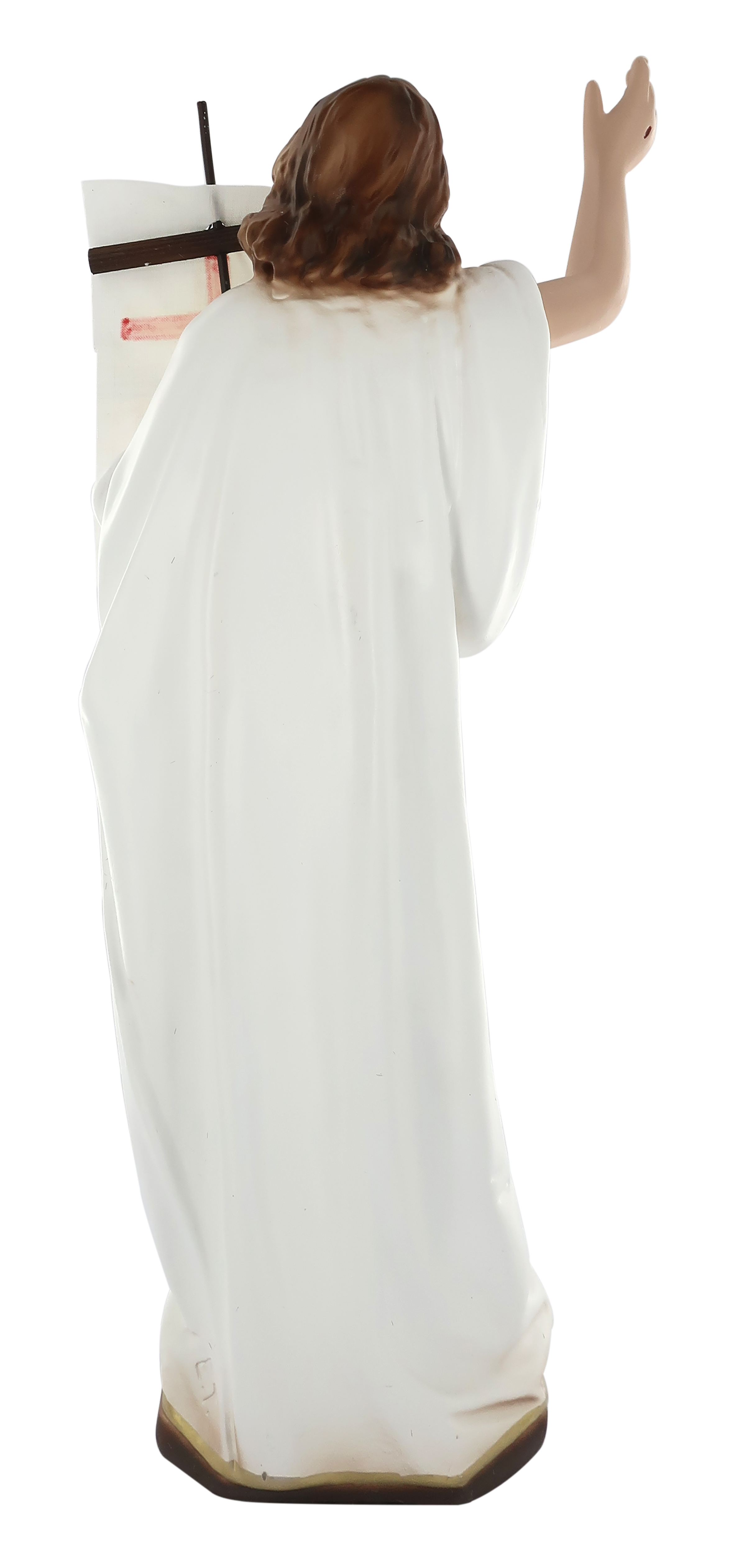 Questa statua di Gesù Risorto da 40 cm è realizzata artigianalmente in Italia e si distingue per la qualità della fattura e per il sapiente uso dei colori. Le linee delle vesti e dei tratti del volto, nonché la resa delle loro pieghe, donano plasticità alla figura e la rendono suggestiva. Particolarmente adatta a nicchie e luoghi di culto, la statua di Cristo Risorto sarà ancora più bella se illuminata dalla luce delle fiammelle dei lumini o dei faretti, che esalterà la fisicità e l'impatto visivo del soggetto.