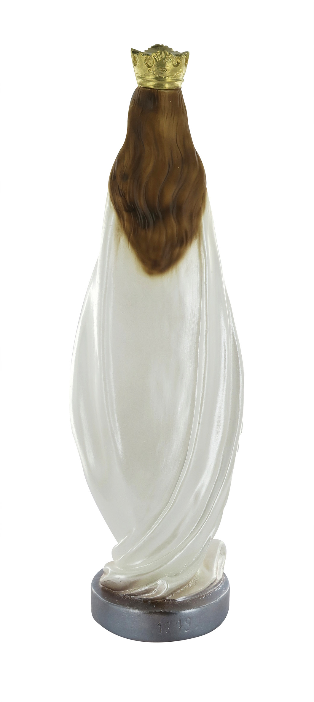 Questa statua della Beata Vergine Maria di Knock da 40 cm d'altezza è realizzata artigianalmente in Italia e si distingue per la qualità della fattura e per il sapiente uso dei colori. L'effetto madreperlato rende le tinte molto lucenti e arricchisce la figura di suggestivi riflessi, donandole un aspetto elegante e raffinato.