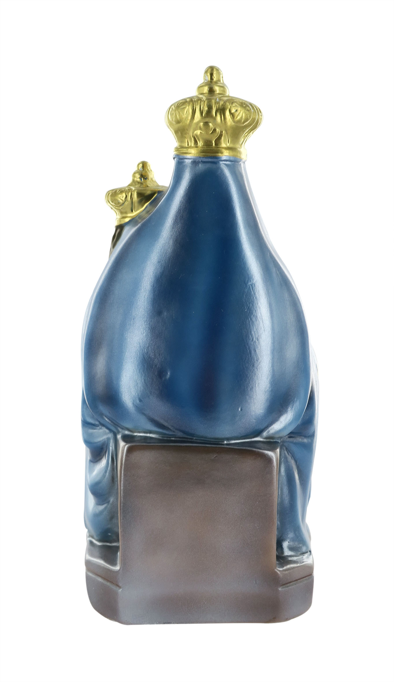 Questa statua della Madonna di Novi Velia da 25 cm è realizzata artigianalmente in Italia e si distingue per la qualità della fattura e per il sapiente uso dei colori, adeguatamente dosati. L'effetto madreperlato rende le tinte molto lucenti e arricchisce la figura di suggestivi riflessi, donandole un aspetto elegante e pregevole. La statua della Madonna del Sacro Monte di Novi Velia, adatta anche a piccole nicchie in ambienti dedicati al culto, è ideale per essere esposta in casa come soprammobile o in una vetrinetta. Sarà una gradita idea regalo per i devoti mariani. La luce delle fiammelle dei lumini o dei faretti esalterà l'effetto iridescente della sua rifinitura madreperlacea.
