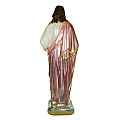 La statua, in gesso finemente dipinto a mano e impreziosito da una rifinitura madreperlata, raffigura il Sacro Cuore di Gesù, devozione molto cara ai cattolici. Cristo è su un piedistallo color oro e verde; sulle mani, appoggiate al petto, porta il segno della Crocifissione. Rappresentato con la barba e i capelli lunghi, Gesù indossa una veste bianca coperta da un mantello rosato, ricchissimo di pieghe e bordato di color oro. Sulla candida tunica spicca il cuore rosso con le fiamme e una corona di spine, rispettivamente volte a simboleggiare l'ardore misericordioso che il Salvatore prova nei confronti dei peccatori e la sofferenza del suo sacrificio. I suoi indumenti vantano un'attenzione particolare alla resa delle pieghe e delle delicate sfumature, che donano grande plasticità e pregio alla rappresentazione.
