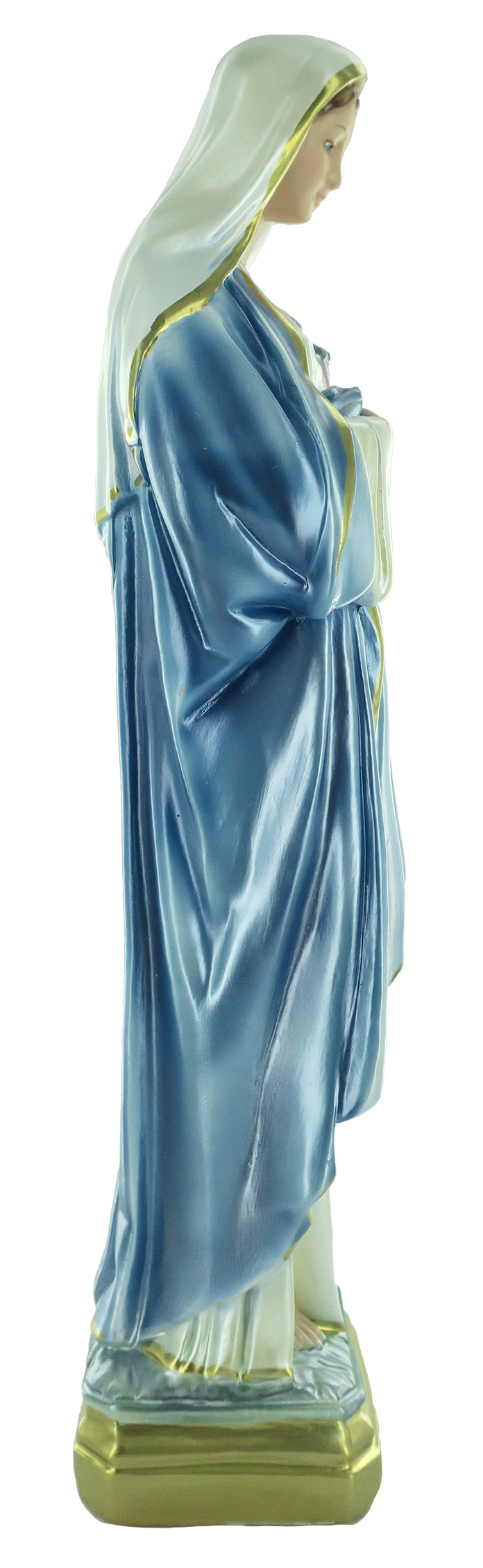 Questa statua del Sacro Cuore di Maria da 40 cm è realizzata artigianalmente in Italia e si distingue per la qualità della fattura e per il sapiente uso dei colori. L'effetto madreperlato rende le tinte molto lucenti e arricchisce la figura di suggestivi riflessi, donandole un aspetto elegante e pregevole. La statua del Sacro Cuore di Maria è ideale per grandi nicchie e luoghi di culto mariani. La luce delle fiammelle dei lumini o dei faretti esalterà l'effetto iridescente della sua rifinitura madreperlacea.