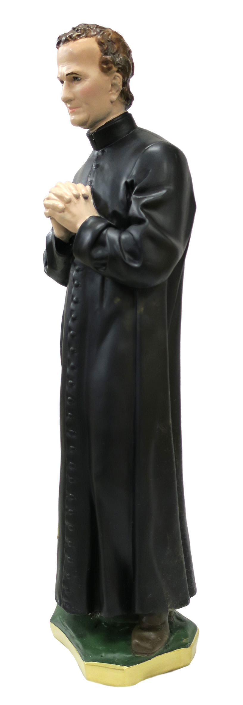 La grande statua, in gesso dipinto a mano, raffigura San Giovanni Bosco, presbitero e fondatore della congregazione dei Salesiani. È considerato il santo patrono di educatori, scolari, giovani, studenti e editori.