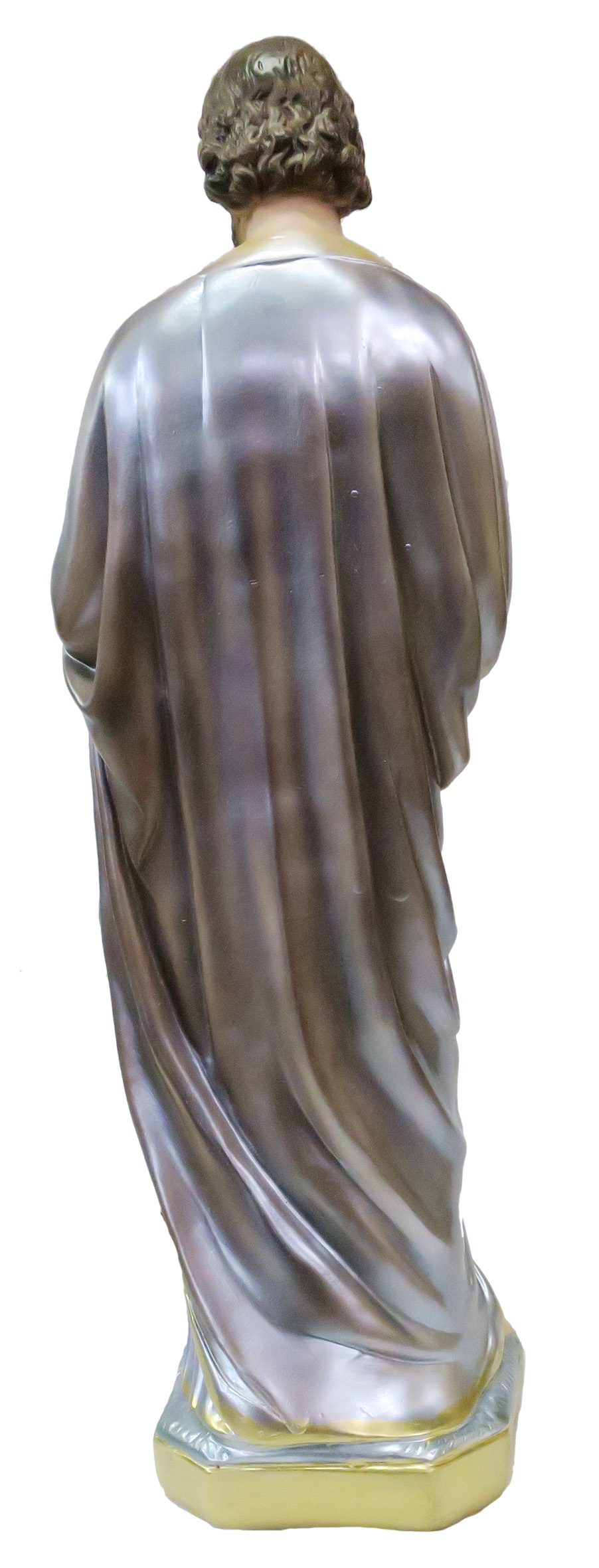 Questa statua di San Giuseppe da 60 cm è realizzata artigianalmente in Italia e si distingue per la qualità della fattura e per il sapiente uso dei colori. L'effetto madreperlato rende le tinte molto lucenti e arricchisce la figura del patrono della Chiesa cattolica e dei lavoratori di suggestivi riflessi, donandole un aspetto elegante e pregiato. La statua di S. Giuseppe è ideale per grandi nicchie e luoghi di culto giuseppini. Una fonte di illuminazione adeguata, come dei faretti, esalterà l'effetto iridescente della sua rifinitura madreperlacea aumentandone l'impatto visivo.