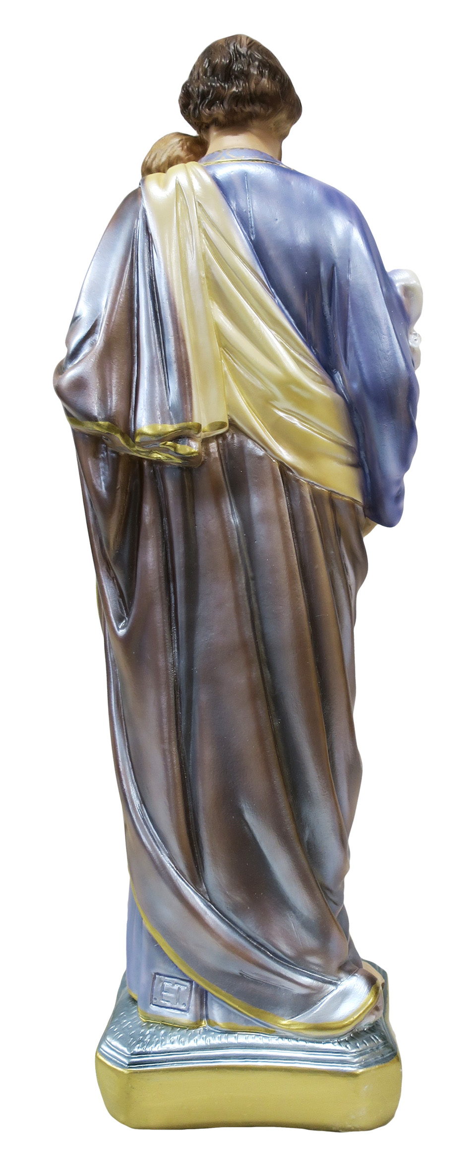Questa statua di San Giuseppe da 50 cm è realizzata artigianalmente in Italia e si distingue per la qualità della fattura e per il sapiente uso dei colori. L'effetto madreperlato rende le tinte molto lucenti e arricchisce la figura del patrono della Chiesa cattolica e dei lavoratori di suggestivi riflessi, donandole un aspetto elegante e pregiato. La statua di S. Giuseppe è ideale per grandi nicchie e luoghi di culto giuseppini. Una fonte di illuminazione adeguata, come dei faretti, esalterà l'effetto iridescente della sua rifinitura madreperlacea aumentandone l'impatto visivo.