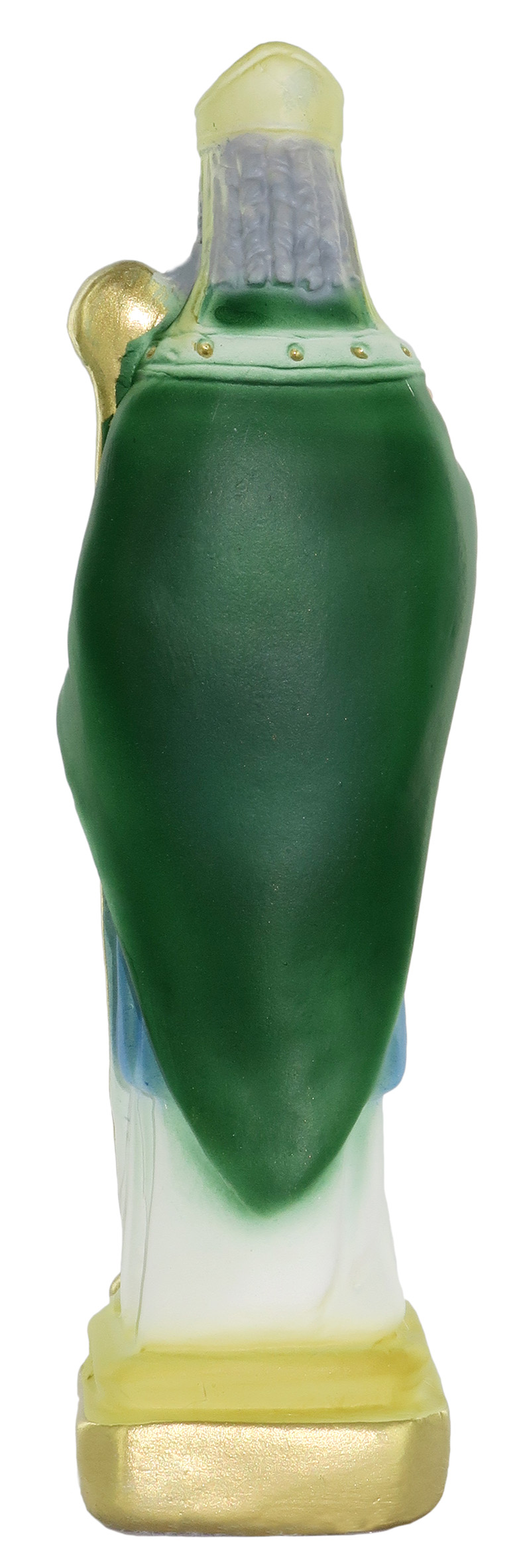 Questa statua di San Patrizio da 15 cm è realizzata artigianalmente in Italia e si distingue per la qualità della sua fattura e per il sapiente uso dei colori. Ideale per piccole nicchie in luoghi di culto, può anche essere esposta in casa come soprammobile o in una vetrinetta. La statua di S. Patrizio può essere una gradita idea regalo per i devoti al santo. Lumini o faretti esalteranno la tridimensionalità del personaggio.