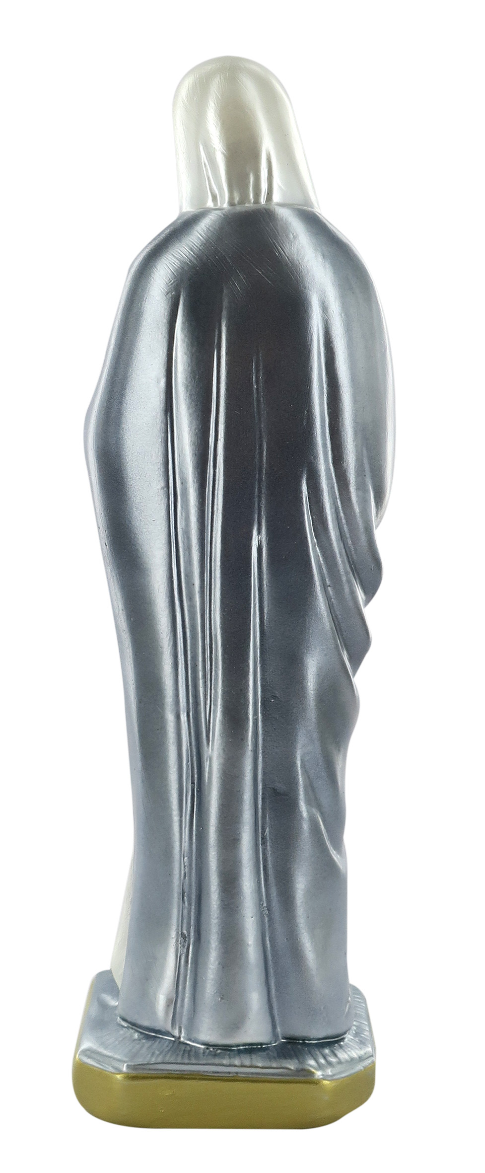 Questa statua di S. Caterina da circa 20 cm è realizzata artigianalmente in Italia e si distingue per la qualità della fattura e per il sapiente uso dei colori. L'effetto madreperlato rende le tinte molto lucenti e arricchisce la figura di suggestivi riflessi, donandole un aspetto elegante e raffinato.