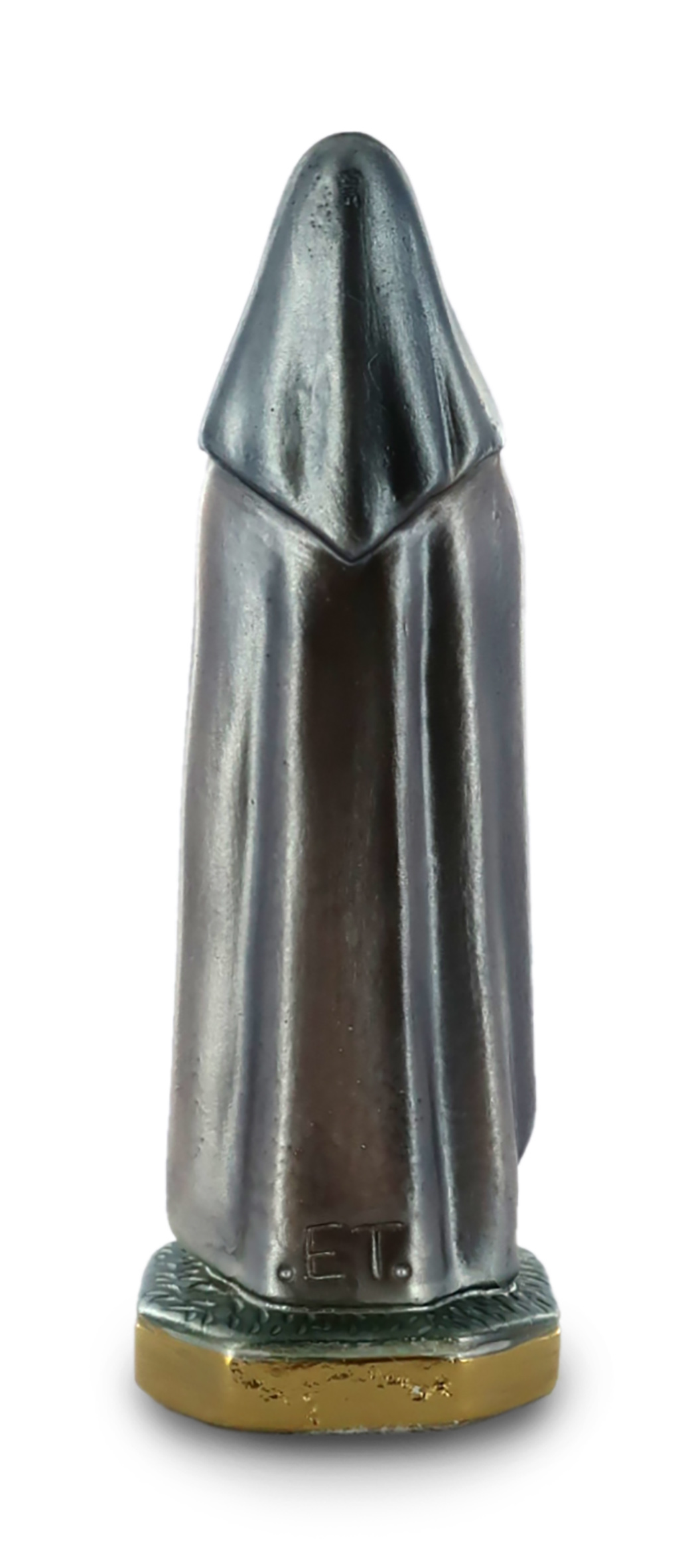 Questa statua di S. Chiara da 15 cm è realizzata artigianalmente in Italia e si distingue per la qualità della fattura e per il sapiente uso dei colori. L'effetto madreperlato rende le tinte molto lucenti e arricchisce la figura di suggestivi riflessi, donandole un aspetto elegante e raffinato.