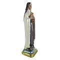La statua, in gesso finemente dipinto a mano e impreziosito da una rifinitura madreperlata, raffigura Santa Teresa di Lisieux, patrona dei missionari, dei malati di AIDS/HIV, della Russia e della Francia. Proclamata santa da Papa Pio XI nel 1925, è qui ritratta su un piedistallo color oro e verde, indossa la tunica scura delle Carmelitane Scalze, coperta da un lungo, candido mantello. Regge in mano i suoi fiori simbolo, le rose, insieme a un crocifisso. Gli indumenti vantano un'attenzione particolare alla resa delle pieghe e delle delicate sfumature, che donano grande plasticità e profondità alla rappresentazione.