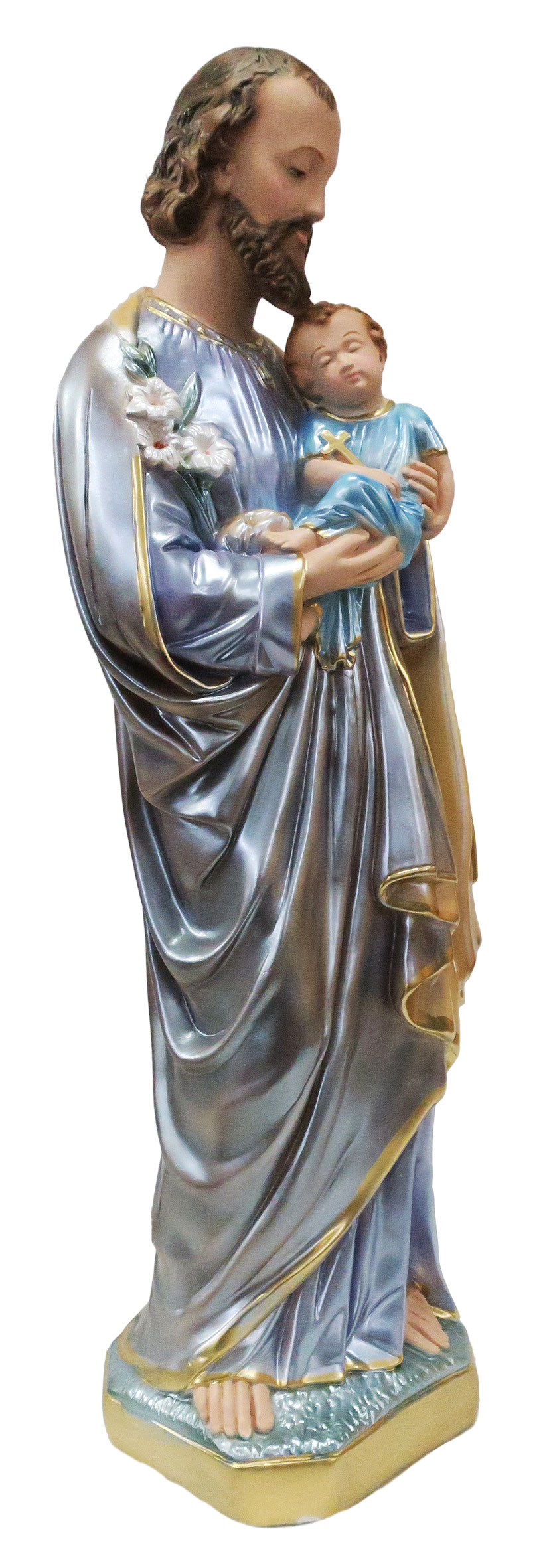 Statua di San Giuseppe con Bambino, in gesso madreperlato, dipinta a mano - 60 cm
