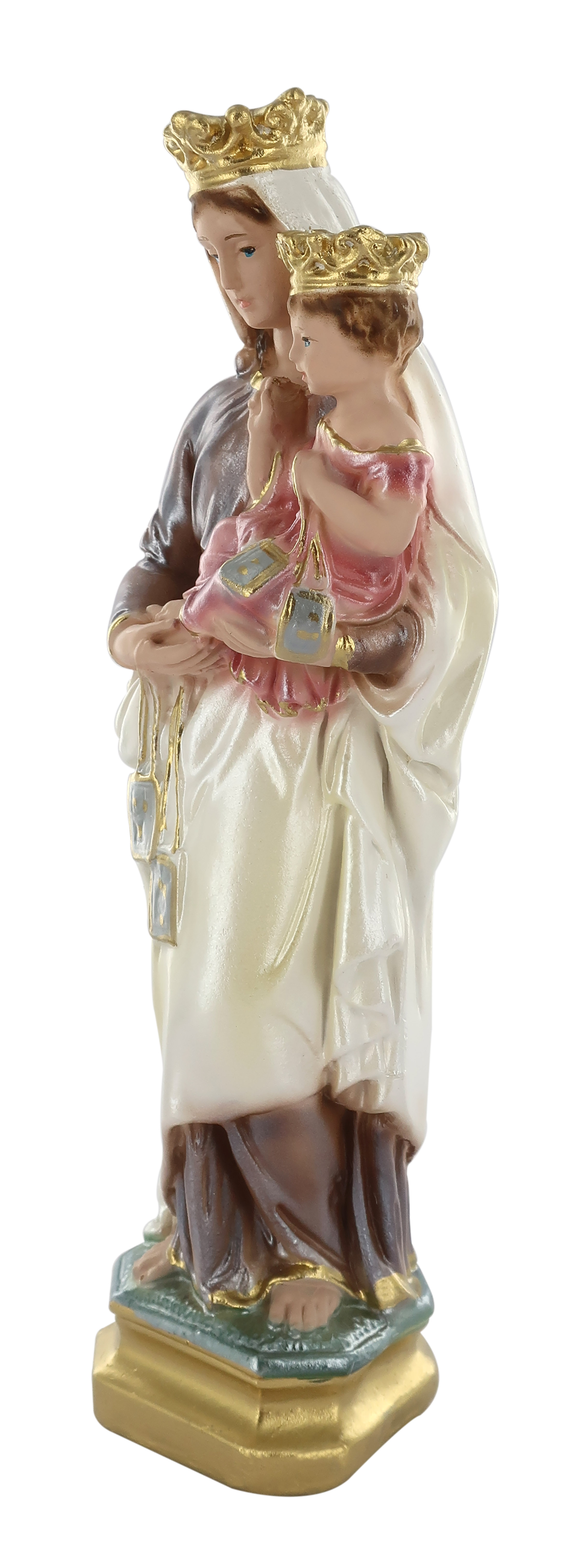 Statua della Madonna del Carmine da 20 cm. Statua realizzata in gesso e dipinta a mano da artigiani italiani. La qualita' e il dettaglio nella pittura della statua, rendono ogni opera unica e preziosa.