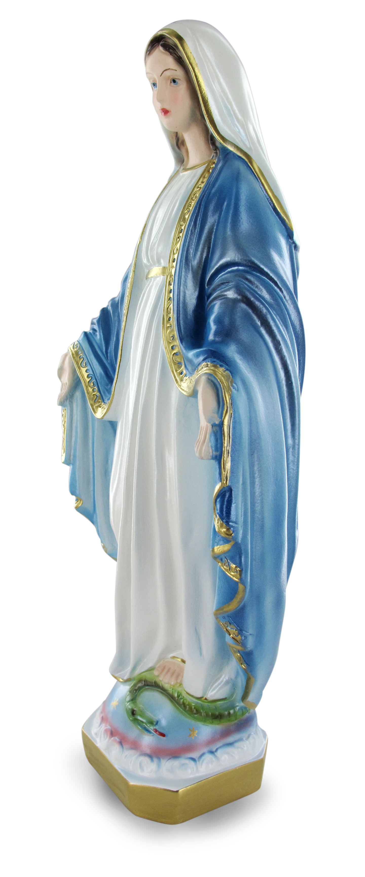 Statua della Madonna Miracolosa da 60 cm. Statua realizzata in gesso e dipinta a mano da artigiani italiani. La qualita' e il dettaglio nella pittura della statua, rendono ogni opera unica e preziosa.