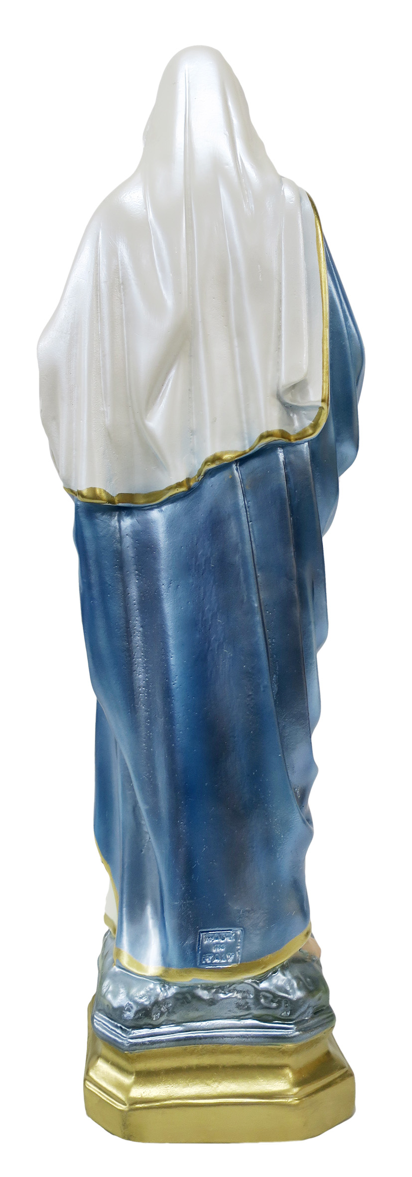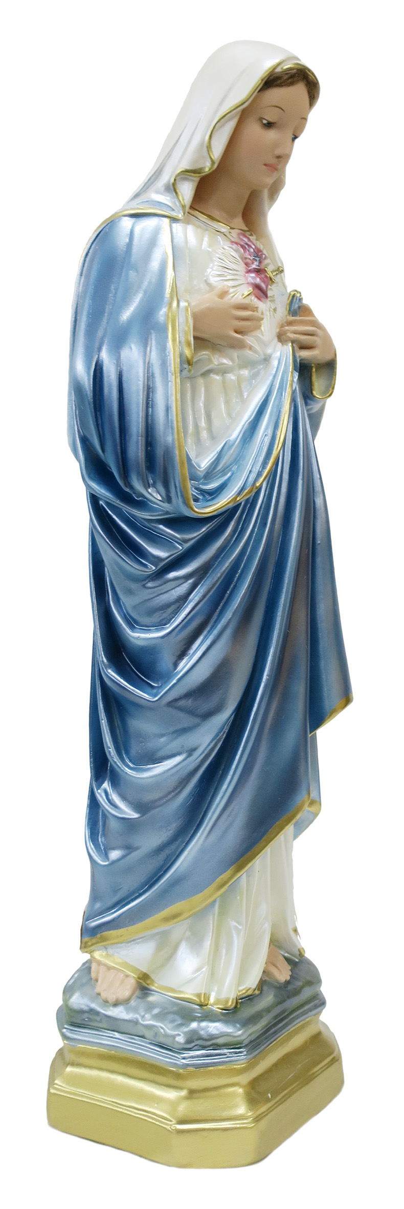 Statua del Sacro Cuore di Maria in gesso madreperlato dipinta a mano cm 20. Statua realizzata in gesso e dipinta a mano da artigiani italiani. La qualita' e il dettaglio nella pittura della statua, rendono ogni opera unica e preziosa.
