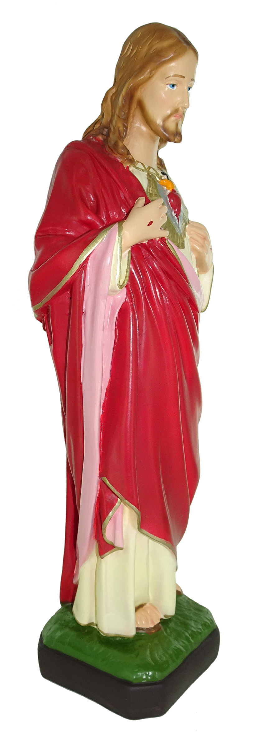La statua, in materiale infrangibile tipo gomma, raffigura il Sacro Cuore di Gesù ed è dipinta a mano. Grazie al materiale di cui è fatta e alla resistenza che la caratterizza, è adatta all'uso esterno, come in giardini e nicchie all'aperto. Può essere esposta anche alla pioggia. La rappresentazione fa riferimento all'organo vitale di Gesù Cristo, che è la massima espressione umana dell’amore divino e anche simbolo della misericordia di Dio.