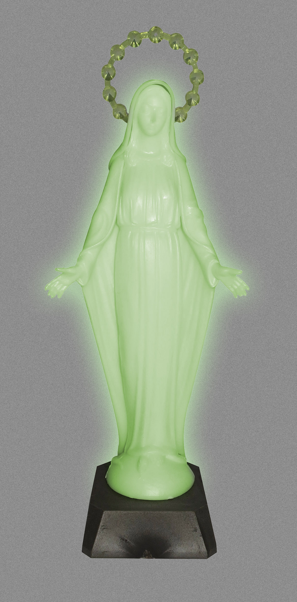 Ferrari & Arrighetti Statua Madonna Miracolosa, Statuetta della Santa Vergine Miracolosa che si Illumina al Buio, Plastica Fosforescente, 20 Centimetri Circa