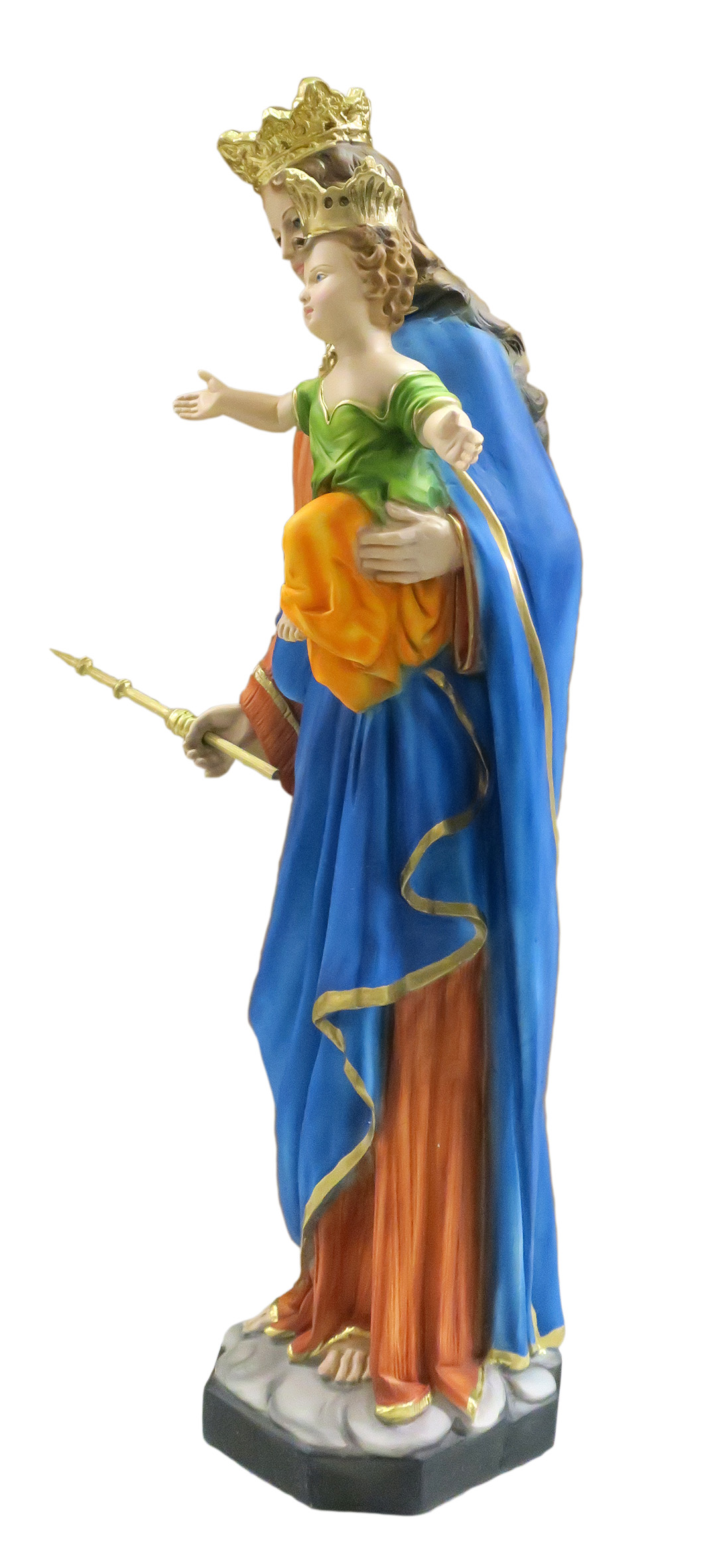 Questa statua di Maria Aiuto dei Cristiani da 60 cm è realizzata artigianalmente in Italia e si distingue per la qualità della fattura e per il sapiente uso dei colori. Adatta a grandi nicchie, ampi ambienti dedicati al culto, cappellette e edicole votive, la statua di S. Maria Ausiliatrice risulterà ancora più bella se illuminata da faretti, che esalteranno la tridimensionalità e l'impatto visivo del soggetto.