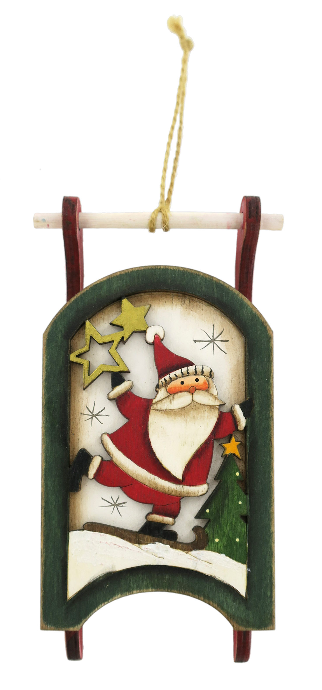 Addobbi Natalizi albero: 36 Babbo Natale in legno con espositore a forma di albero