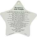 STOCK: Addobbi natalizi per albero: Stella della Sacra Famiglia in cartoncino plastificato con fiocchetto in italiano. Sul retro c'è una preghiera/bendizione della famiglia.