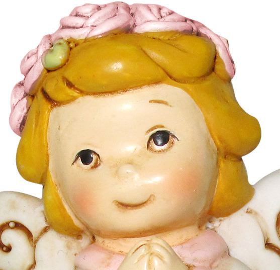 Angelo in resina rosa che prega da 6 cm.