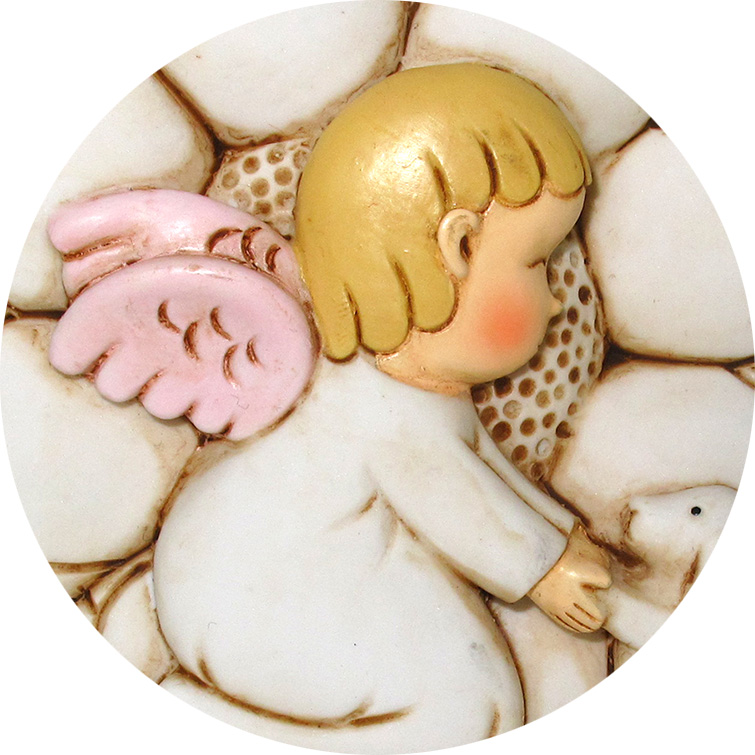 Fiore con angioletto in resina color rosa - 9,5 cm
