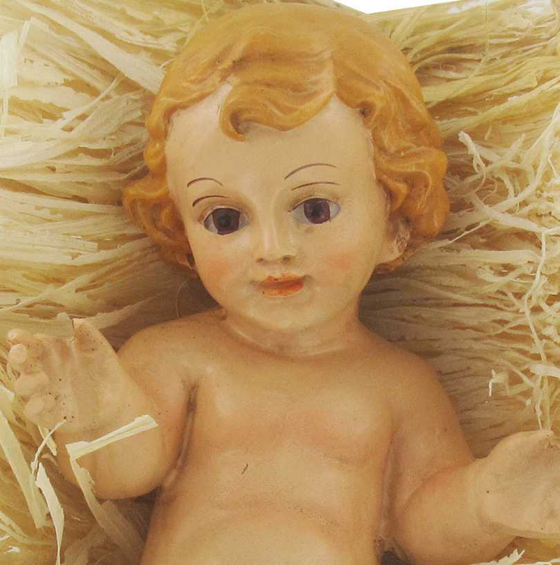 Questa statua di Gesù Bambino, parte della Linea Natalizia di Ferrari & Arrighetti, è il simbolo della nascita del Salvatore. Raffigurato a braccia aperte e col viso rivolto al cielo, il bambino poggia sulla schiena sopra un giaciglio di simil-paglia che vuole ricordare il fieno della mangiatoia usata come culla dalla Sacra Famiglia.