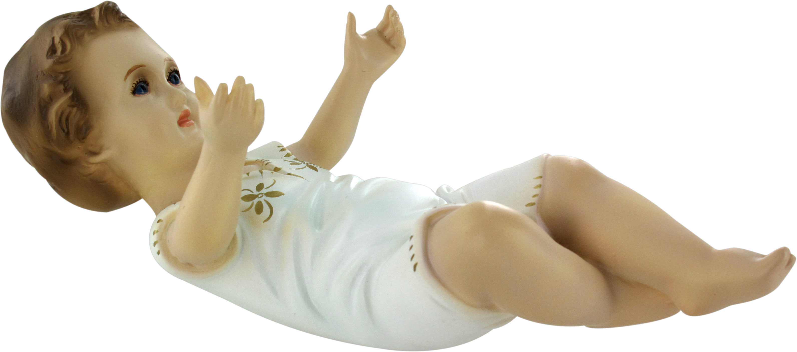 Gesù Bambino per presepe, dipinto a mano e con occhi in cristallo - 24 cm