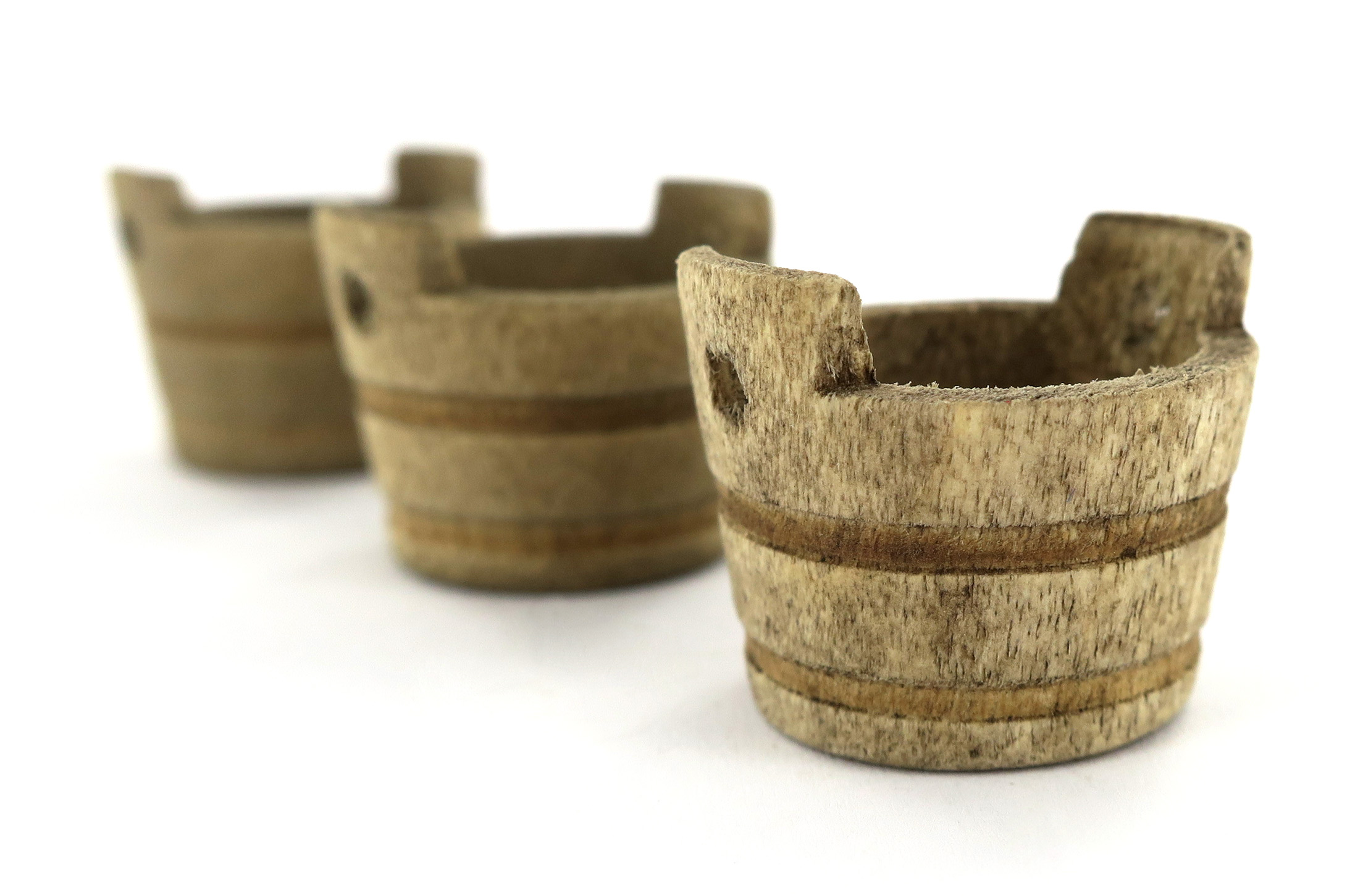 Tinozza In Legno Con Manici Per Presepe, Busta Con 3 Tinozze In Miniatura, Legno, Marrone, 2x2x2 Cm