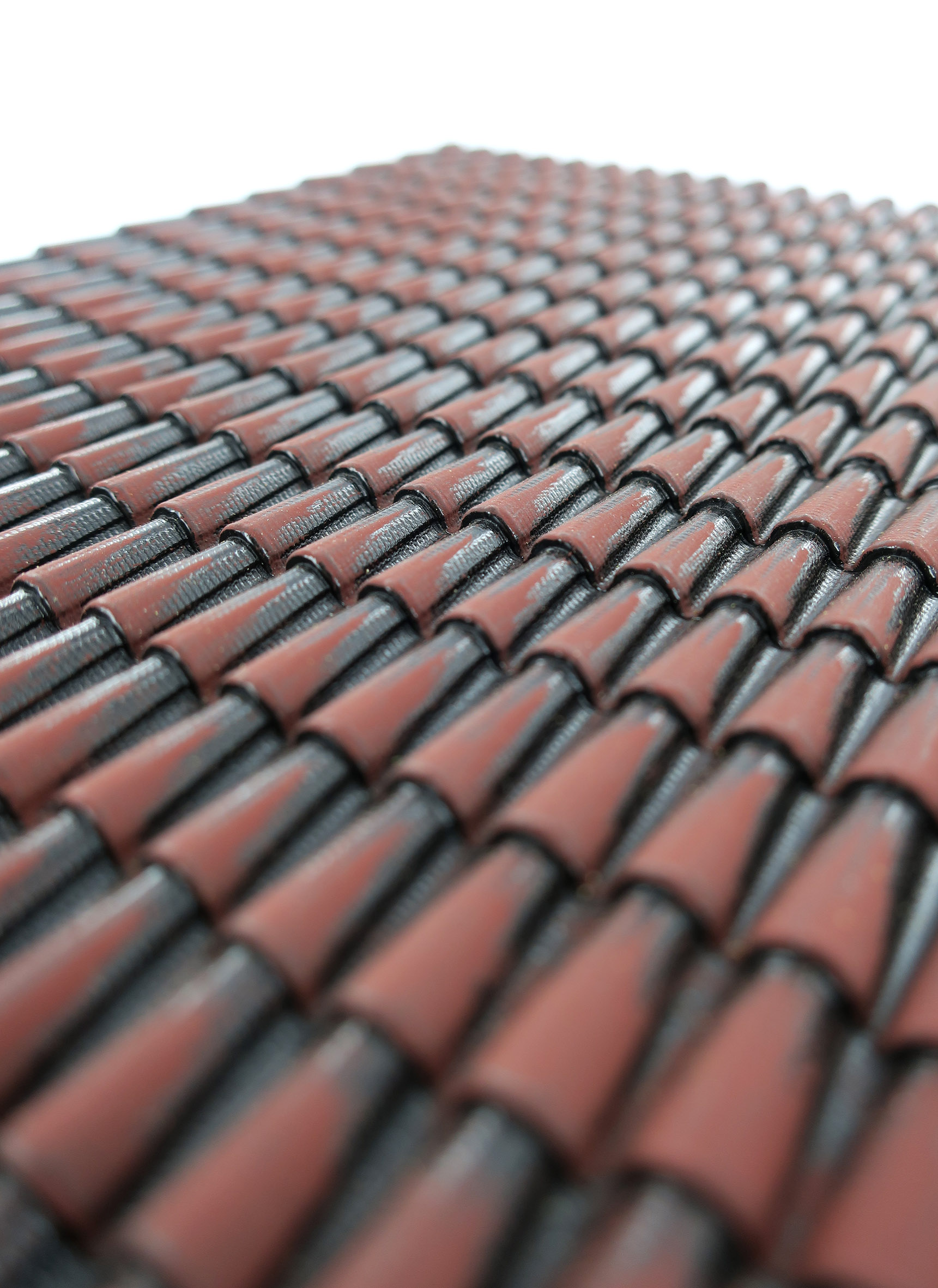 Foglio di plastica FLESSIBILE che riproduce la superficie di un tetto. Con trama a tegole, per un effetto realistico. Dimensioni: 23 x 20 cm. Realizzato artigianalmente in Italia.