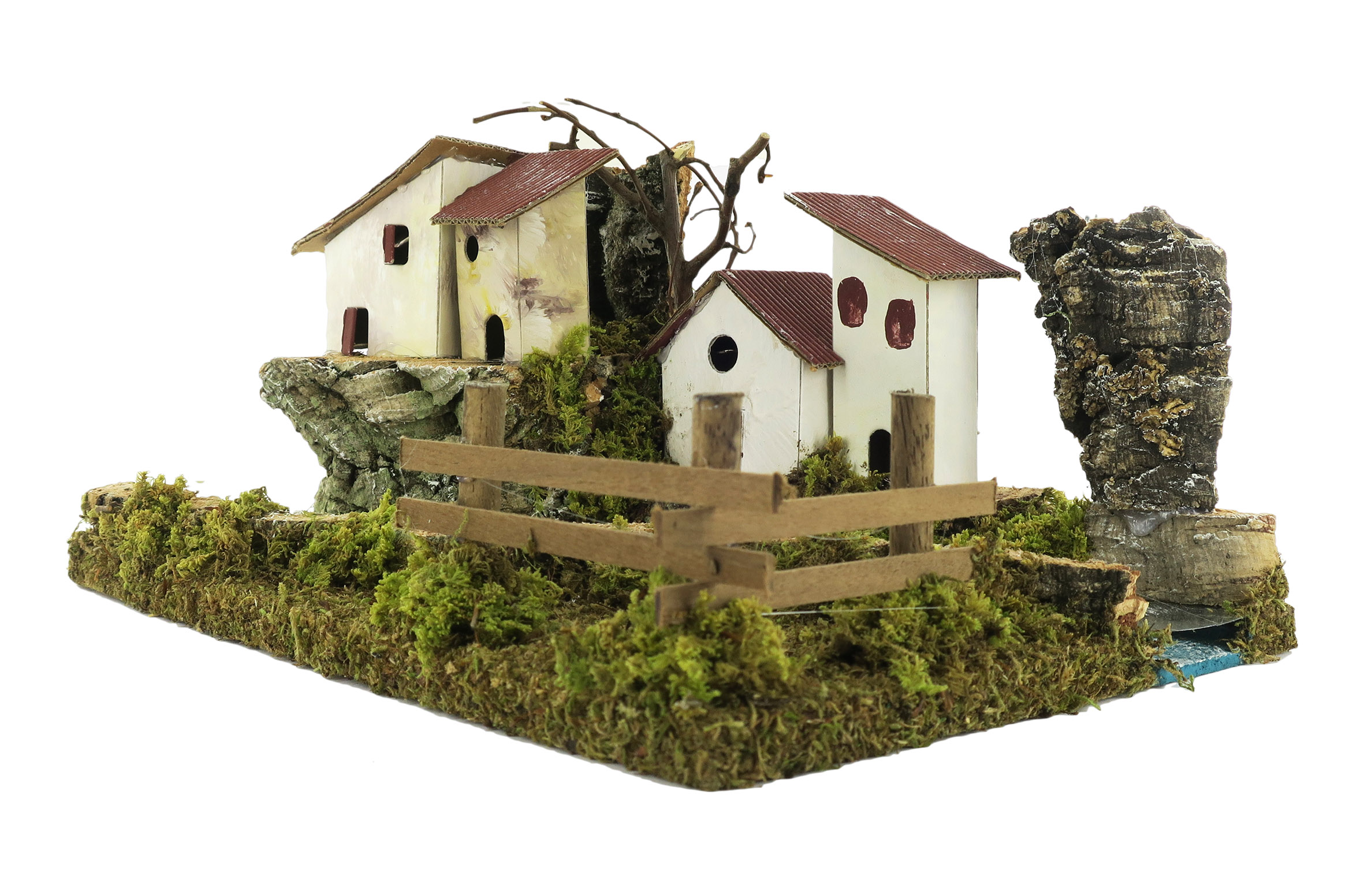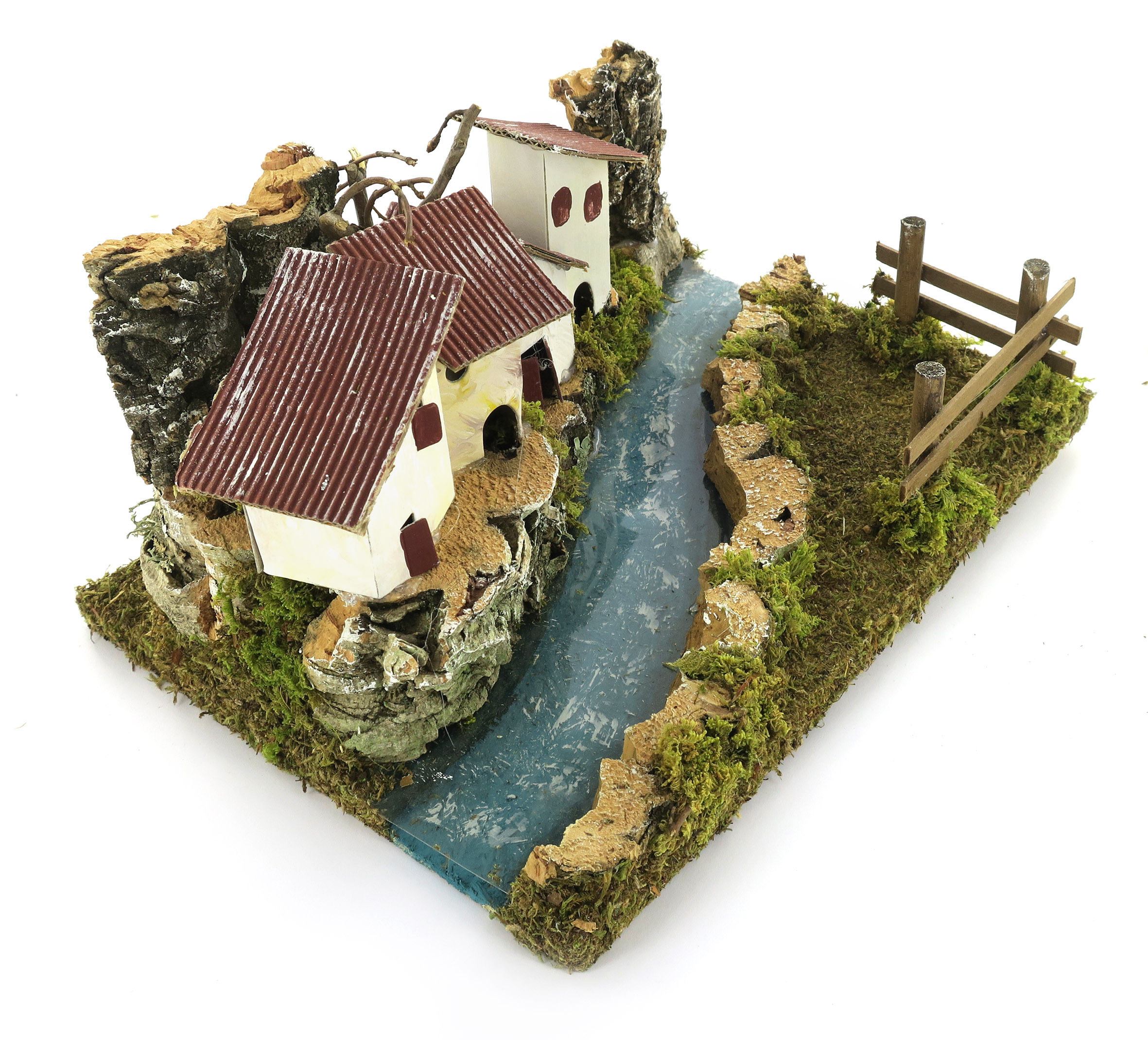 Paese su Tratto di Fiume Componibile per Presepe, Linea Natale Presepe Bertoni, Legno, Multicolore, 26 x 18 x 11 Cm