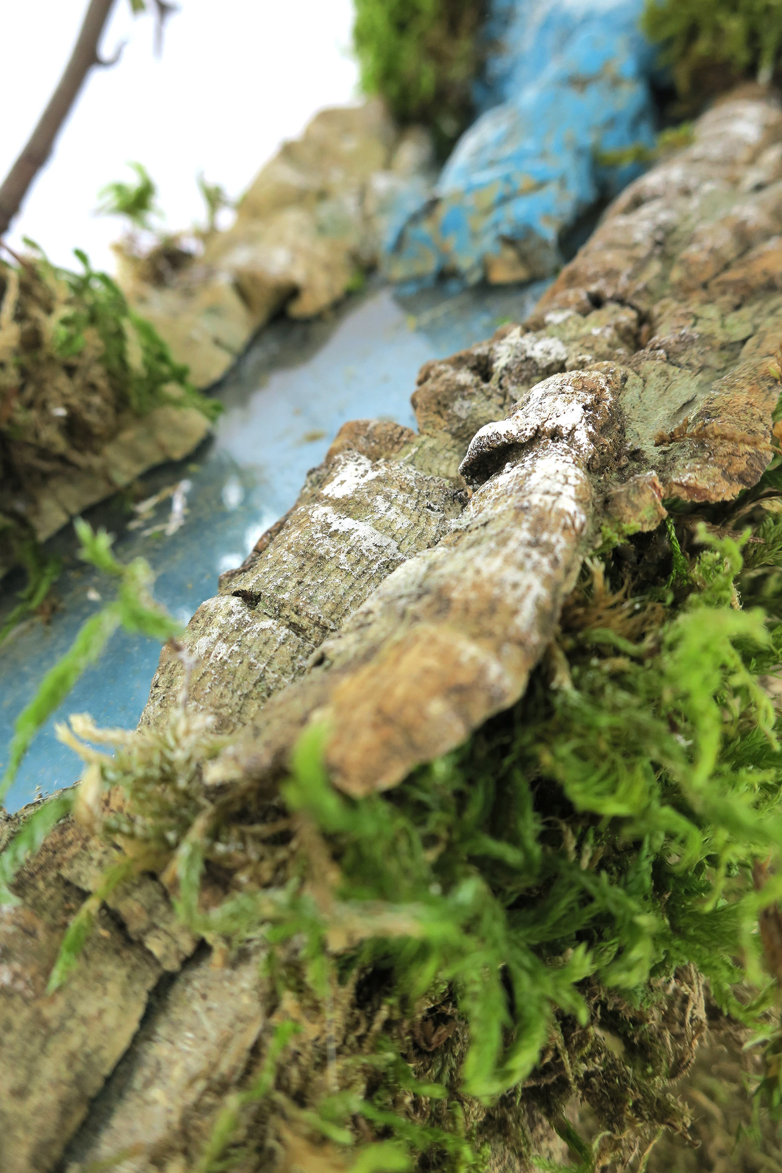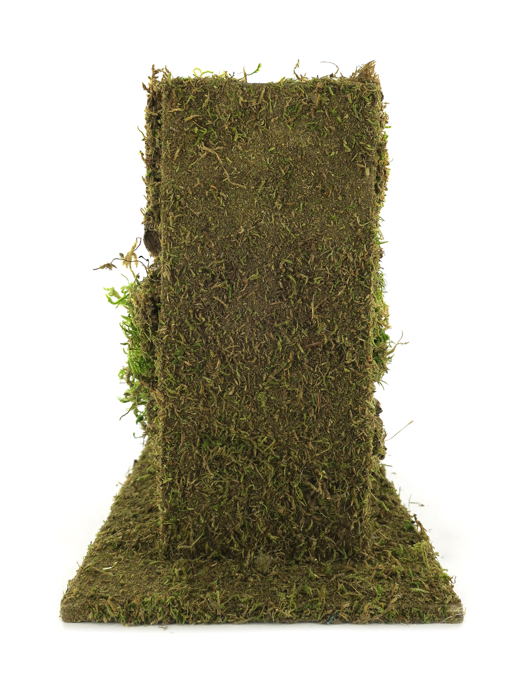 Dimensioni: 15 x 21 x 23,5 Cm. Materiali: Legno, sughero e muschio. Realizzato artigianalmente in Italia.